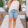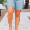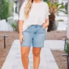 Get lost in the moment wearing these 1822 Denim shorts! Expertly crafted with a high rise fit and stretch fabric, they offer great recovery and a figure flattering silhouette! The light distressing adds a touch of effortless style to your wardrobe! Perfect for all-day comfort and confidence!
