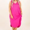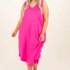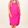 This dress is perfect for a bright spring day! The fuchsia color is bold and fierce and the casual style is so easy to dress up or down! The material is super soft so you can comfortably wear this all day! Style it with sandals for a chic look!