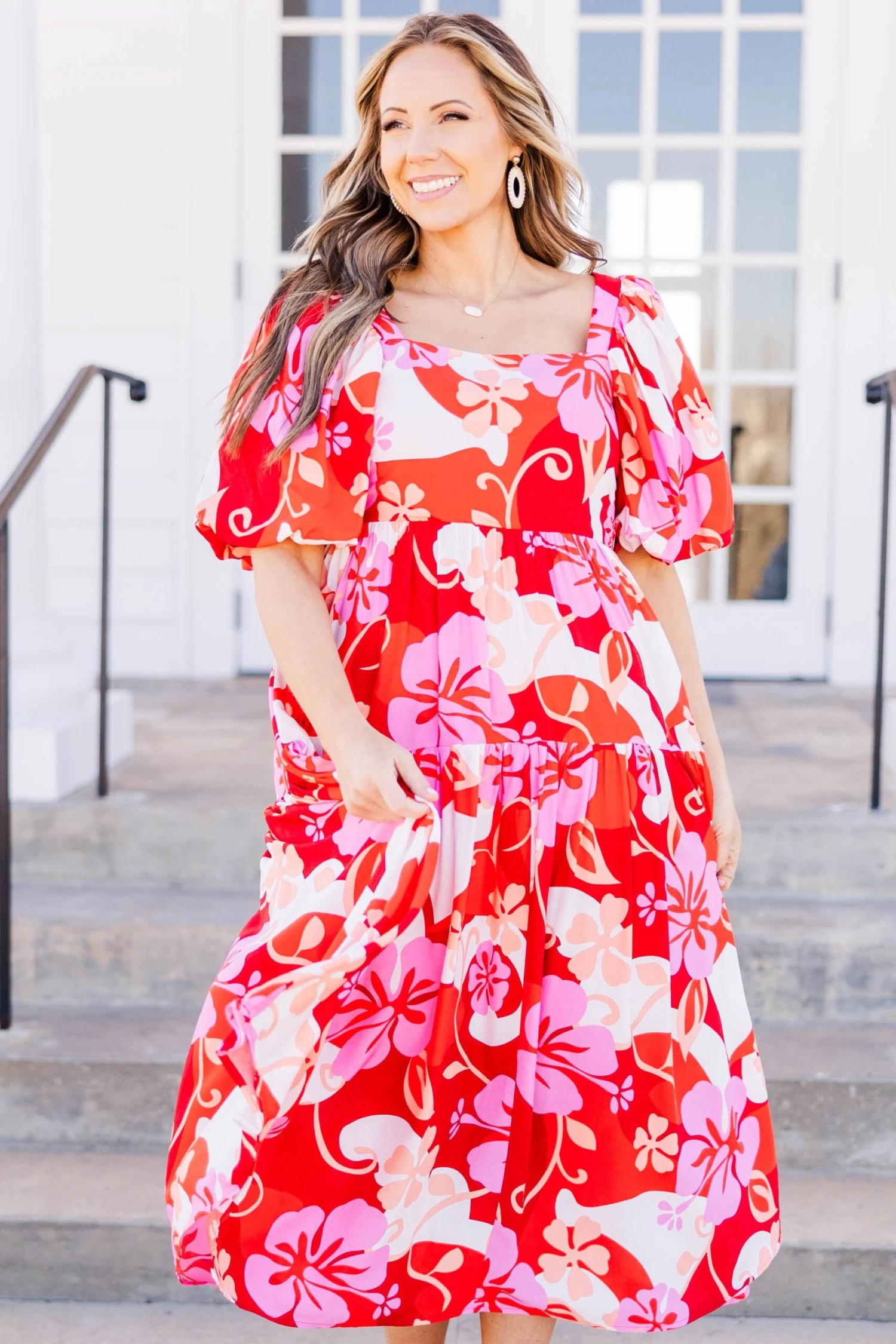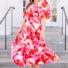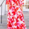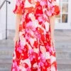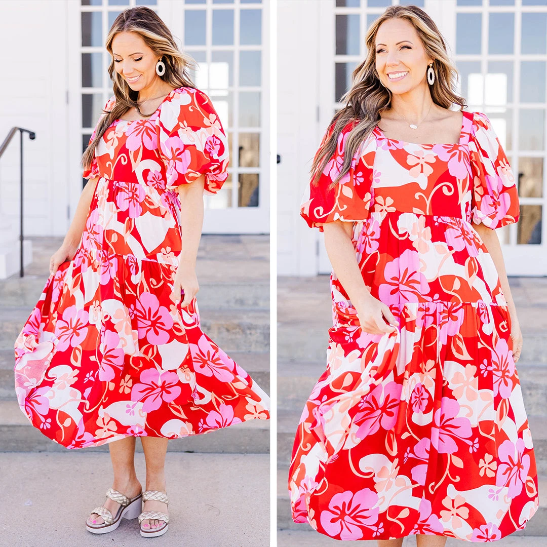 This dress features a bold red combo and a beautiful floral pattern that is perfect for the season! With bubble sleeves and a flowy fit, it provides a perfect balance of style and comfort for any occasion!