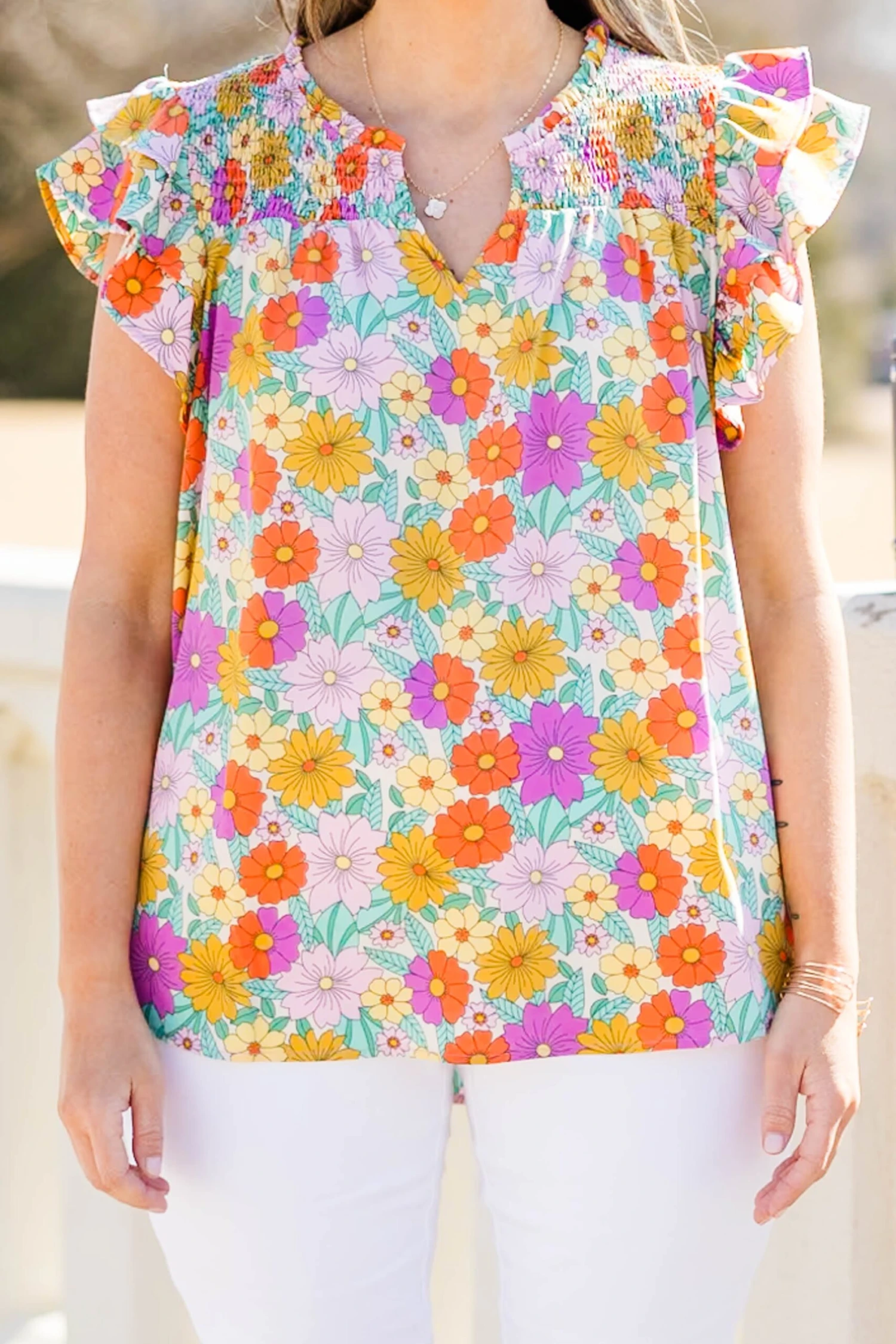 You need this beauty in your wardrobe! This top features flutter sleeves and a delicate floral pattern, creating a flowy fit that’s perfect for any occasion! The smocking detail adds a touch of elegance to this versatile piece!