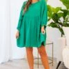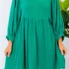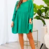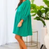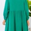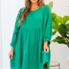 Experience ultimate comfort and style with our A Little Getaway Dress in green! Made from soft gauze material and featuring elastic sleeves, our lined babydoll style dress is perfect for any occasion! Stay cool and chic in this must-have piece!