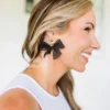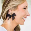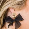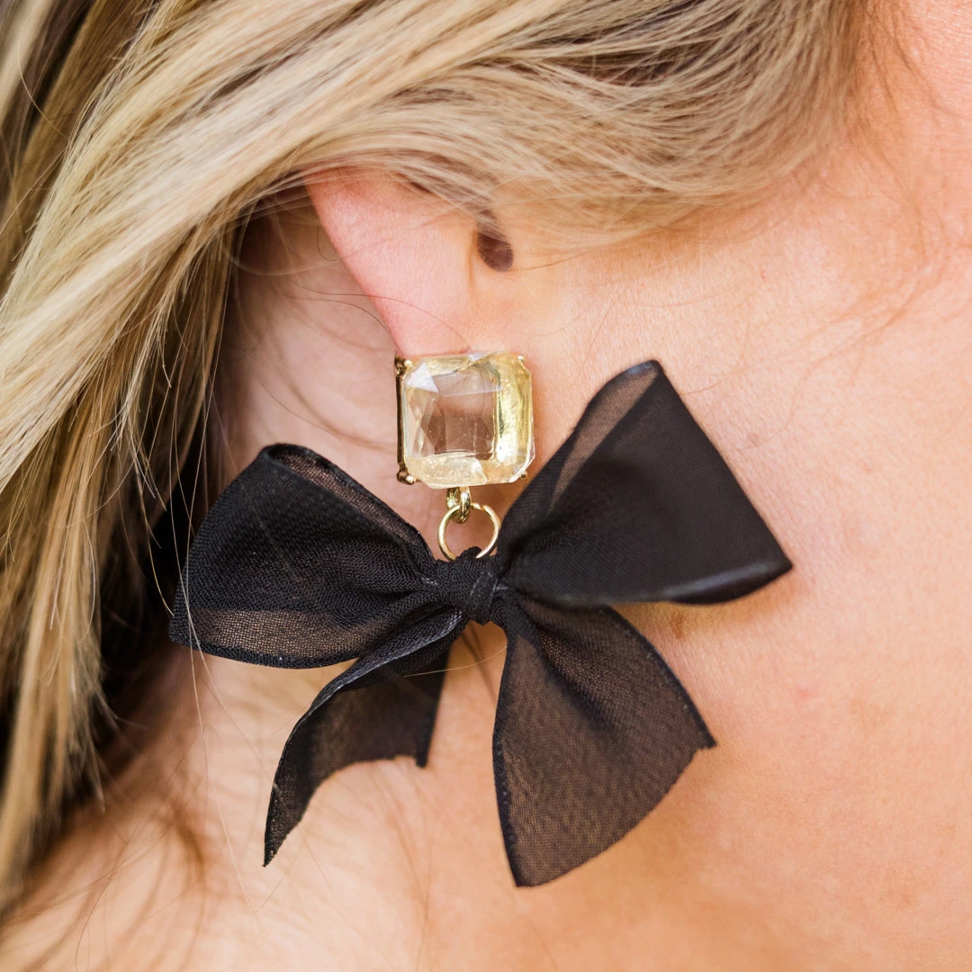 Add some sparkle to your wardrobe with these earrings! Featuring clear gemstone detailing and a bow tie ribbon dangle, these black earrings will elevate any outfit! Talk less, shimmer more!