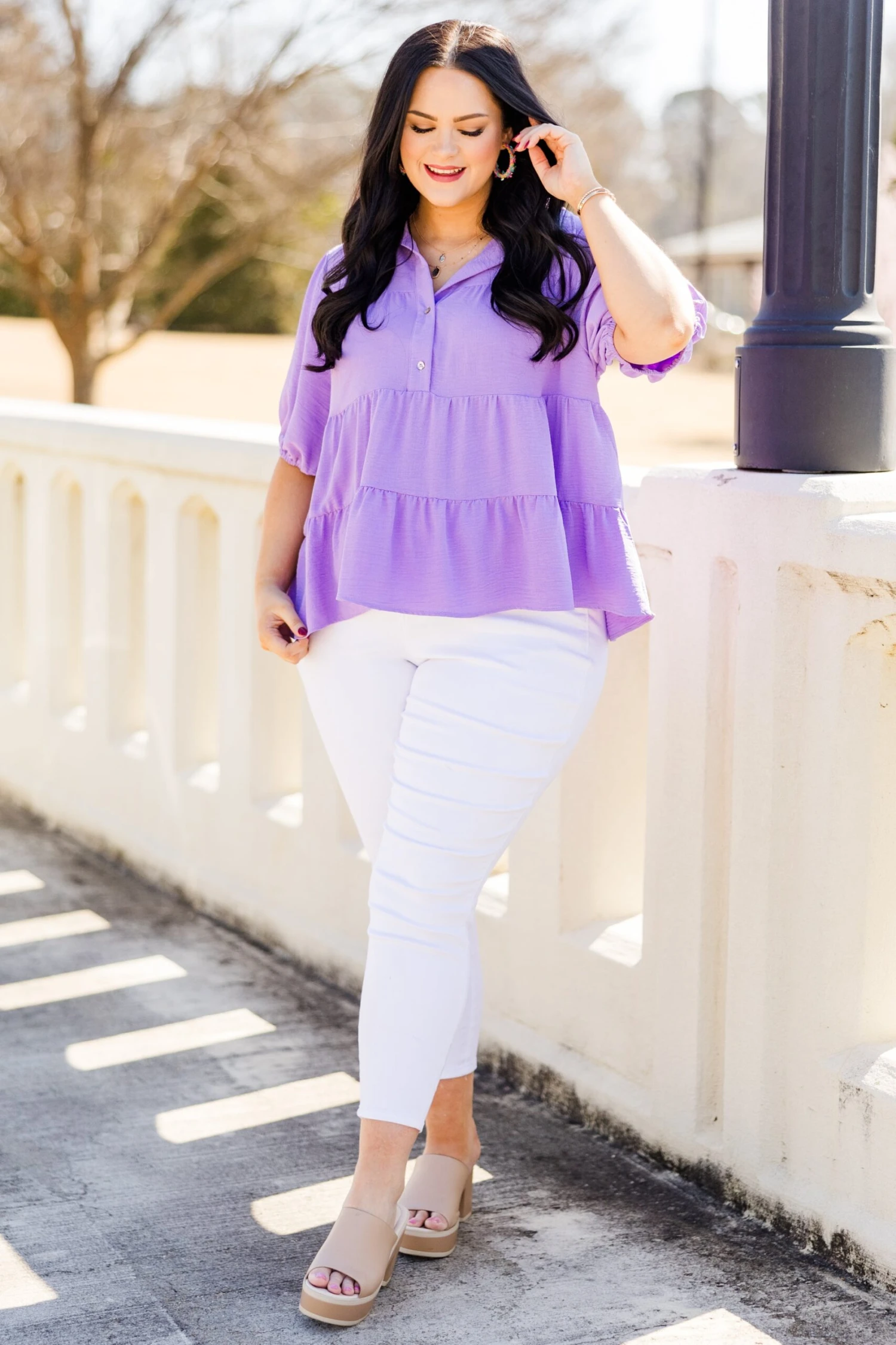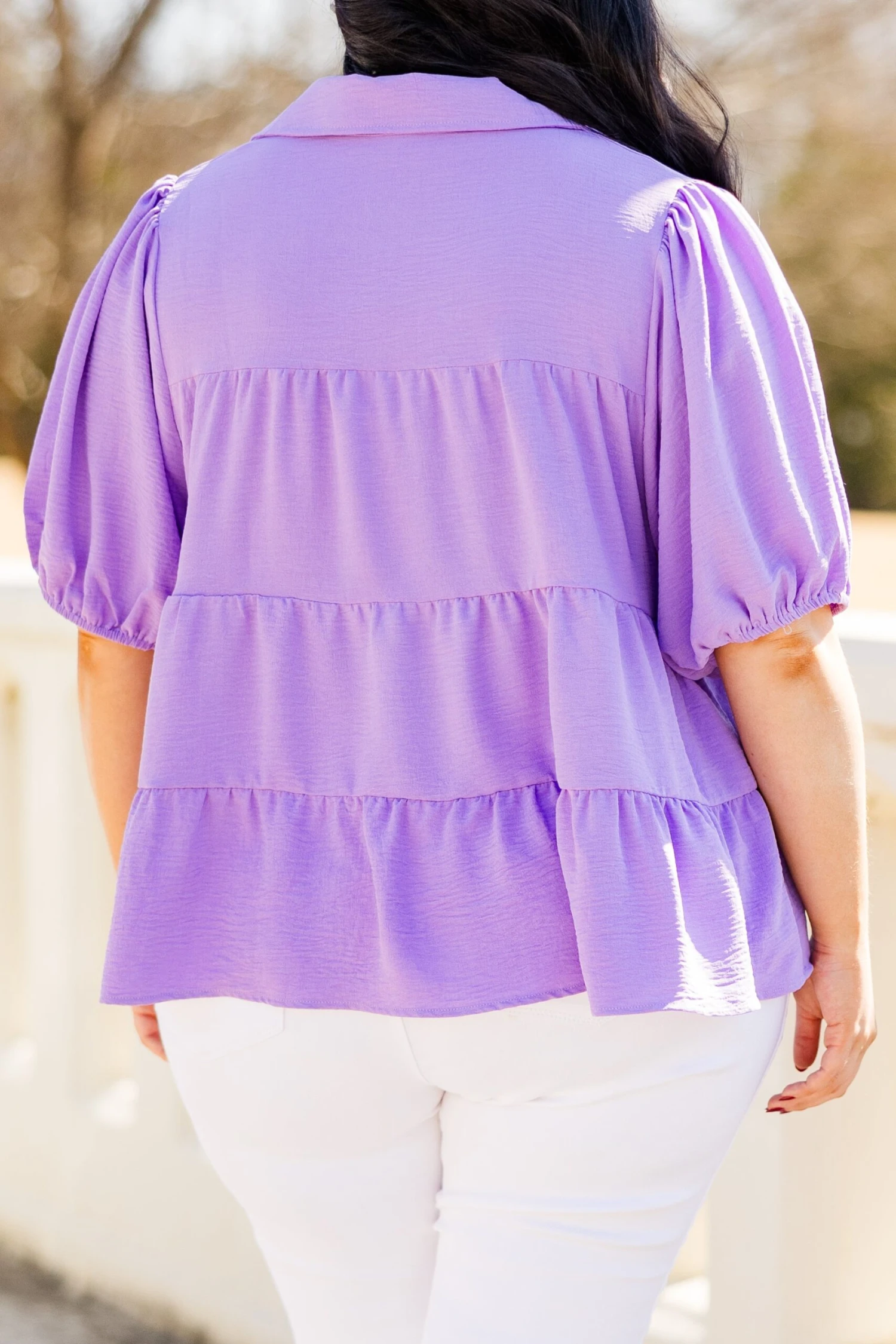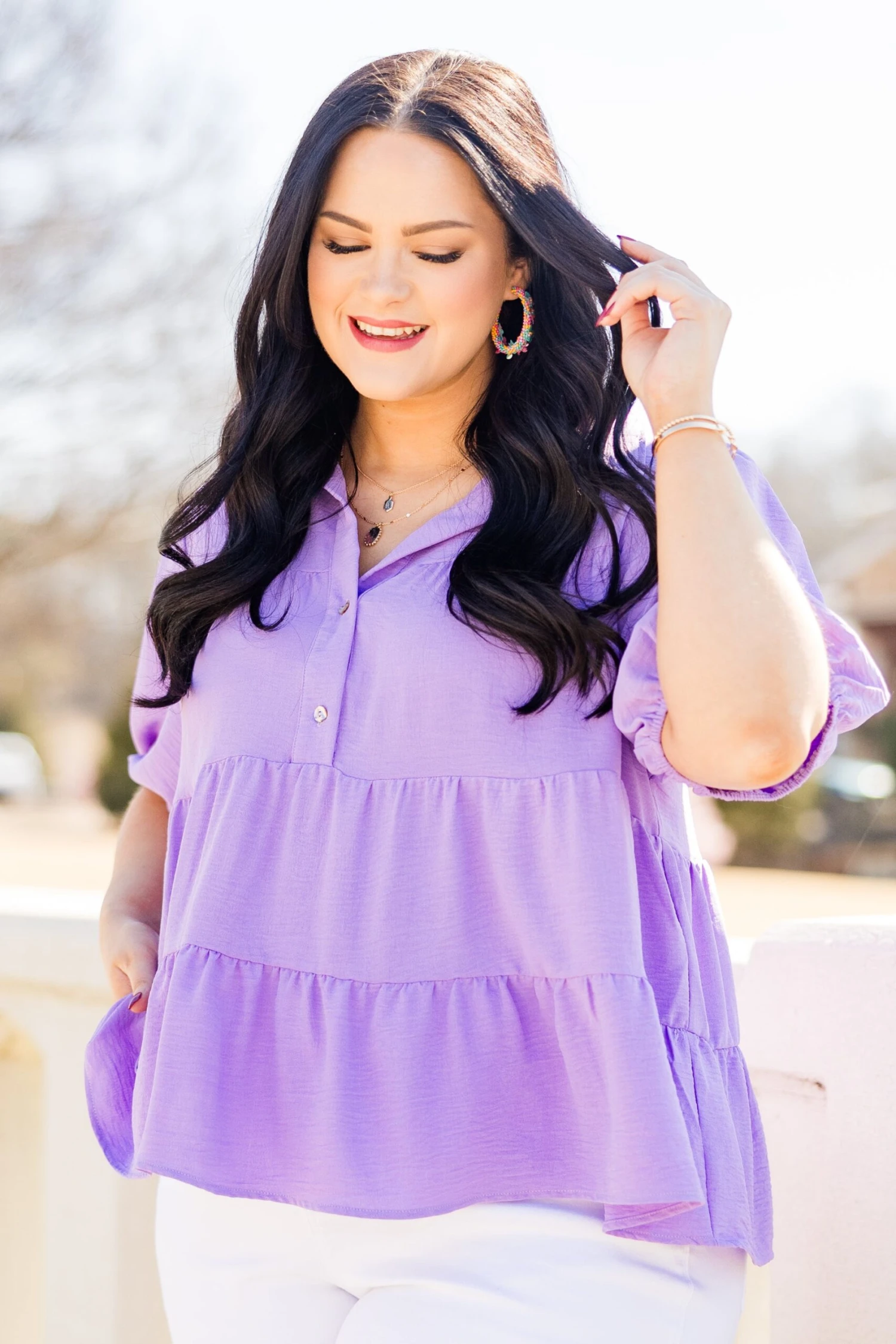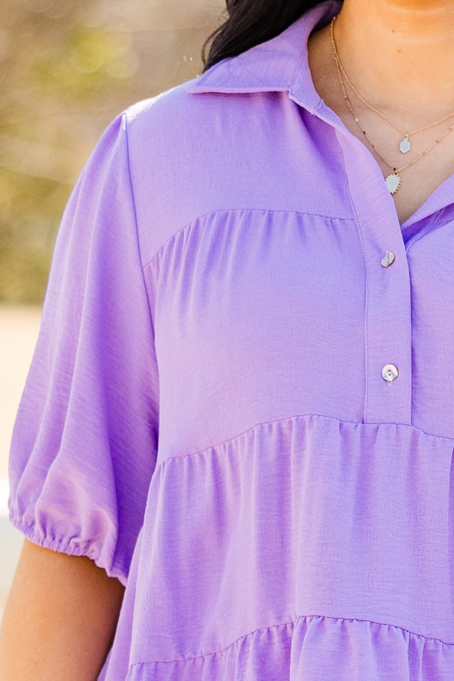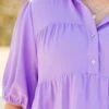 Add a little magic to your wardrobe for the season! It boasts a babydoll design and bold lavender color! The bubble sleeves add a playful touch while the flowy fit exudes effortless chic! Elevate your wardrobe with this must-have piece!