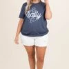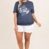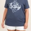 Go enjoy the salty sea in this tee! The neutral navy color can be paired with anything and the nautical graphic is perfect for a day spent by the water! Style this tee with a pair of shorts and sandals for a casual chic look!