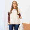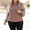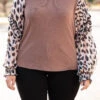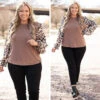 It isn’t a coincidence that you came across this beautiful top! This top has a soft mocha color with leopard pattern, bubble sleeve that are super trendy! The stretchy, figure flattering fit is perfect for pairing with some cute pants and booties for a sassy chic look!