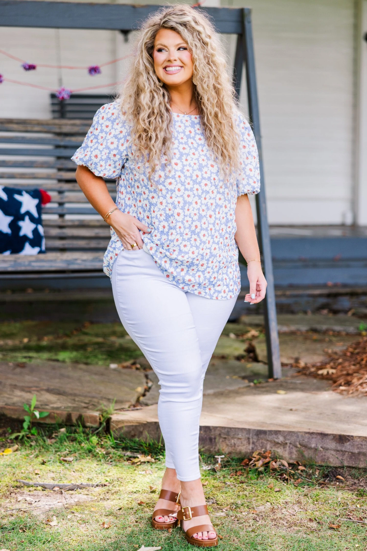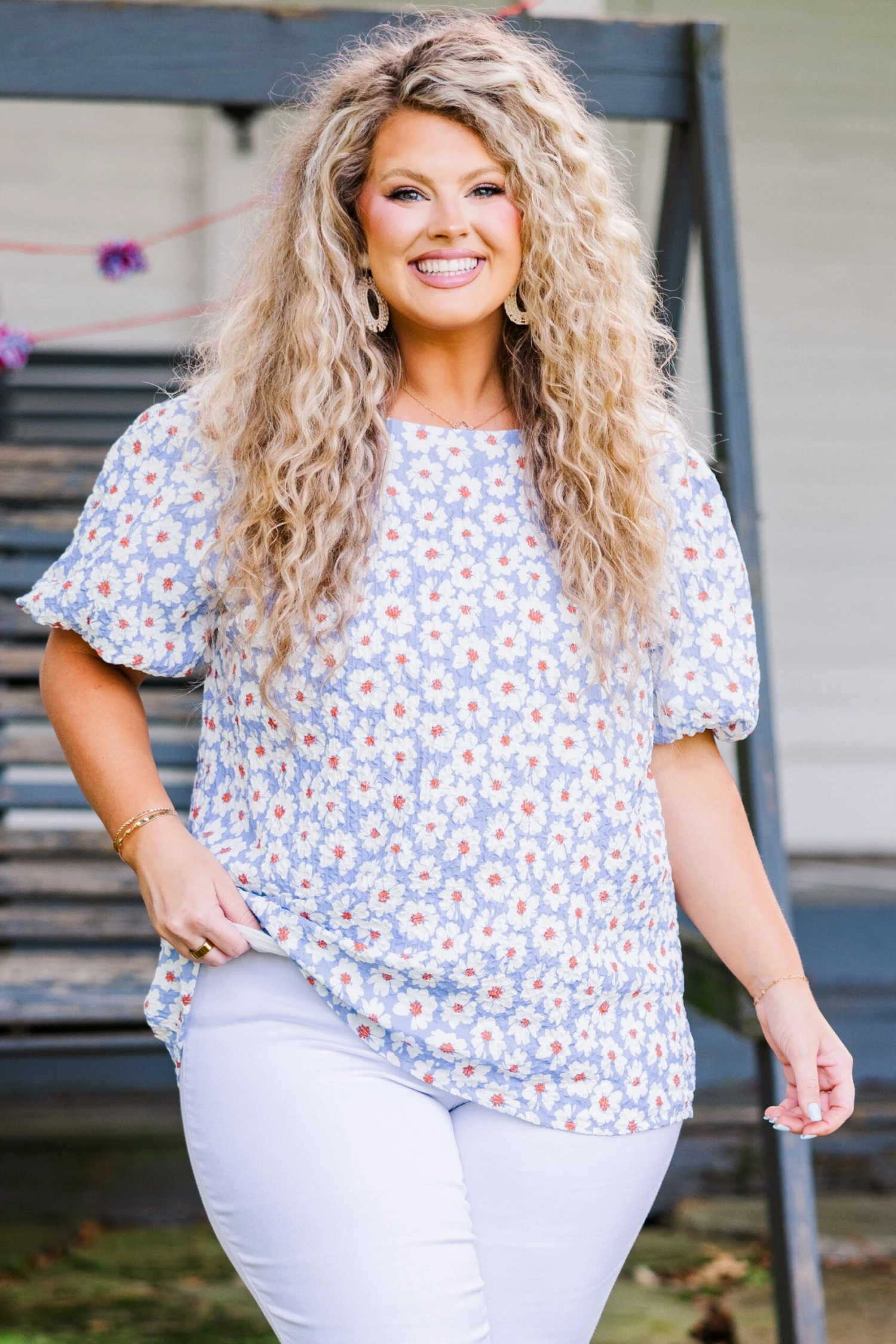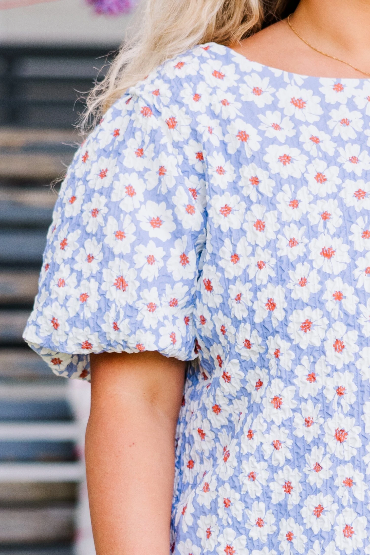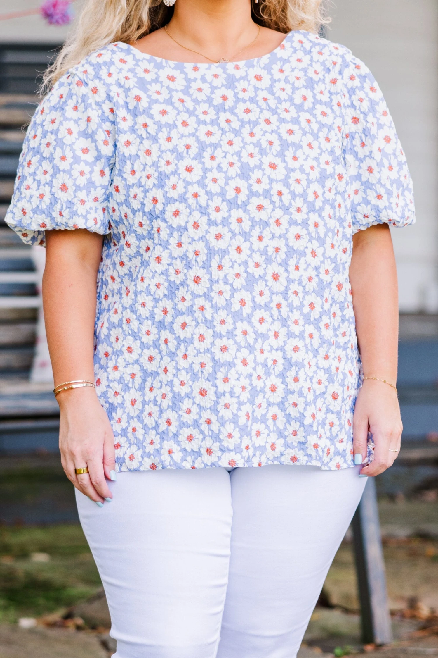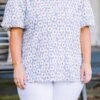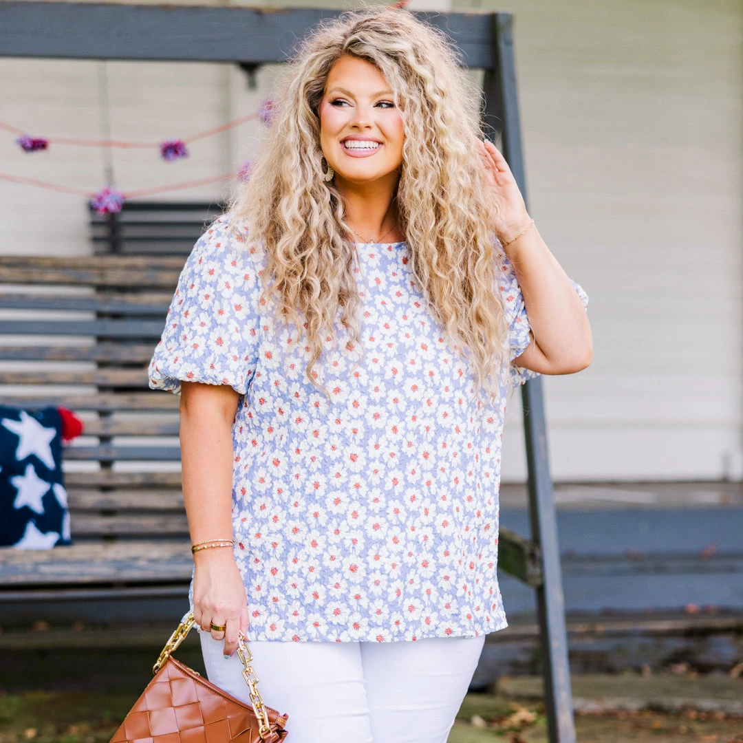 Elevate your wardrobe with this top in lavender! Crafted with a textured fabric and featuring playful elastic bubble sleeves, this top is perfect for any occasion! The fun floral pattern and keyhole back button closure add an extra touch of fun! Make a statement and stand out with this top!