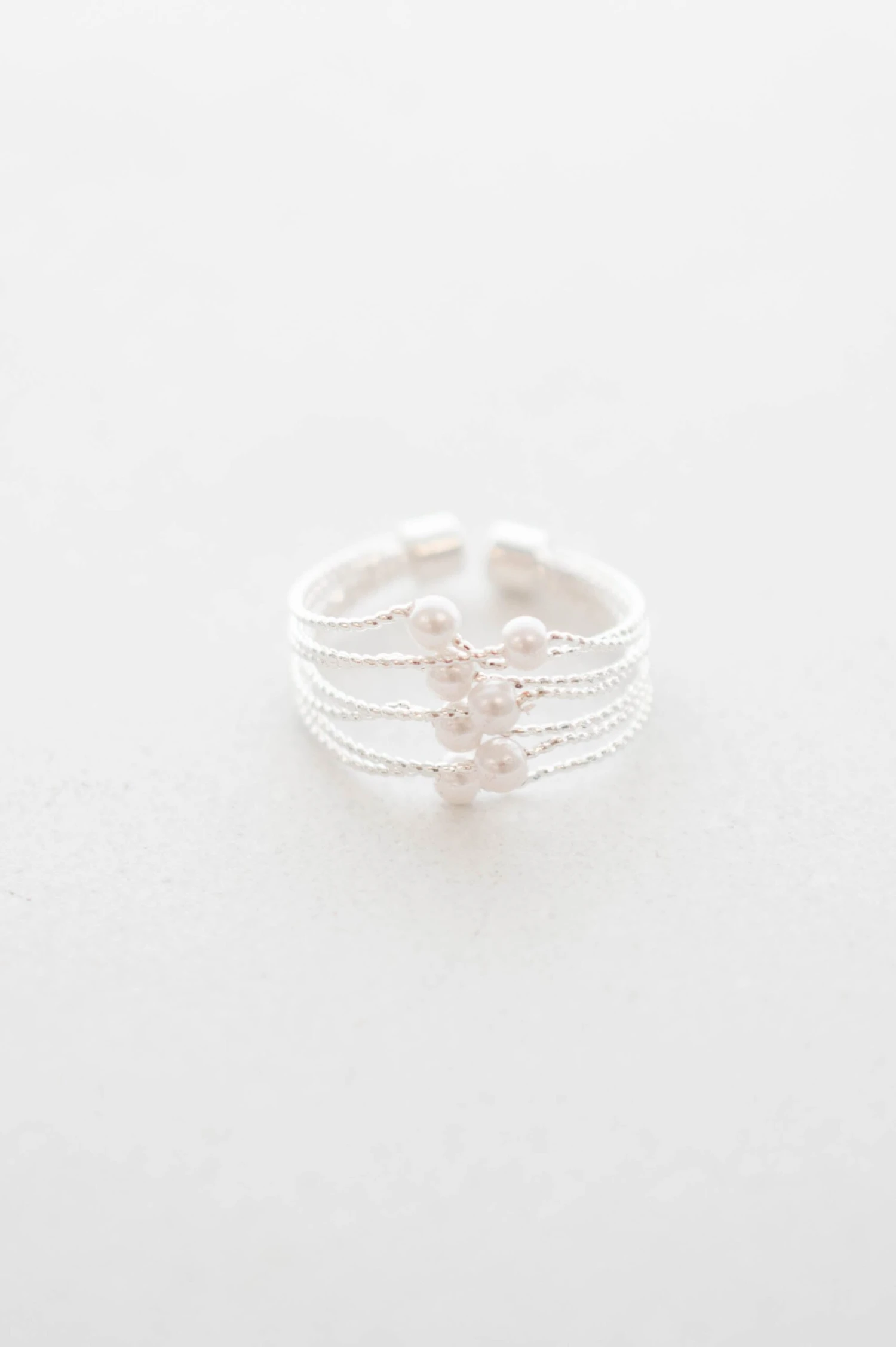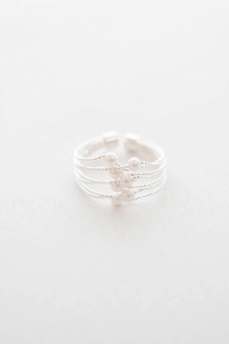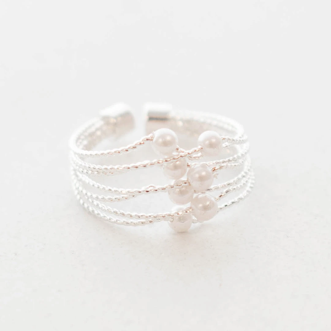 Prepare for a romantic day with this beautiful ring! This ring has a dazzling silver color and delicate pearls along the front! This ring is perfect to pair with a classy dress for a date night, or a pretty blouse and skinnies for a brunch date! Style this ring with all your favorite outfits this season for an elegant, chic look!