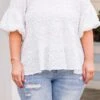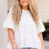 Elevate your style with this lovely top in a classic white color! The raised polka dot pattern adds a touch of elegance, perfect for a brunch date or a day out on the town! Upgrade your wardrobe and exude confidence with this versatile piece!