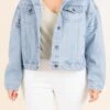 If you are waiting on a sign to grab this cutie, this is it! This jacket has a classic light wash with embroidery detail that is a season favorite! The figure flattering fit is is easy to layer over all of your favorite outfits for a casual chic look!