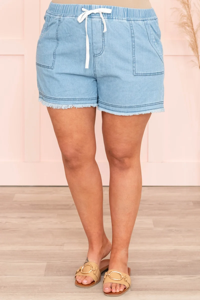 Enjoy a sunny breeze with these cute shorts! The light denim color is perfect for spring and these have an elastic waist with a drawstring so you can adjust them however you like! The functional pockets are amazing and these are perfect to throw on with a cute top whenever you want a more elevated look!