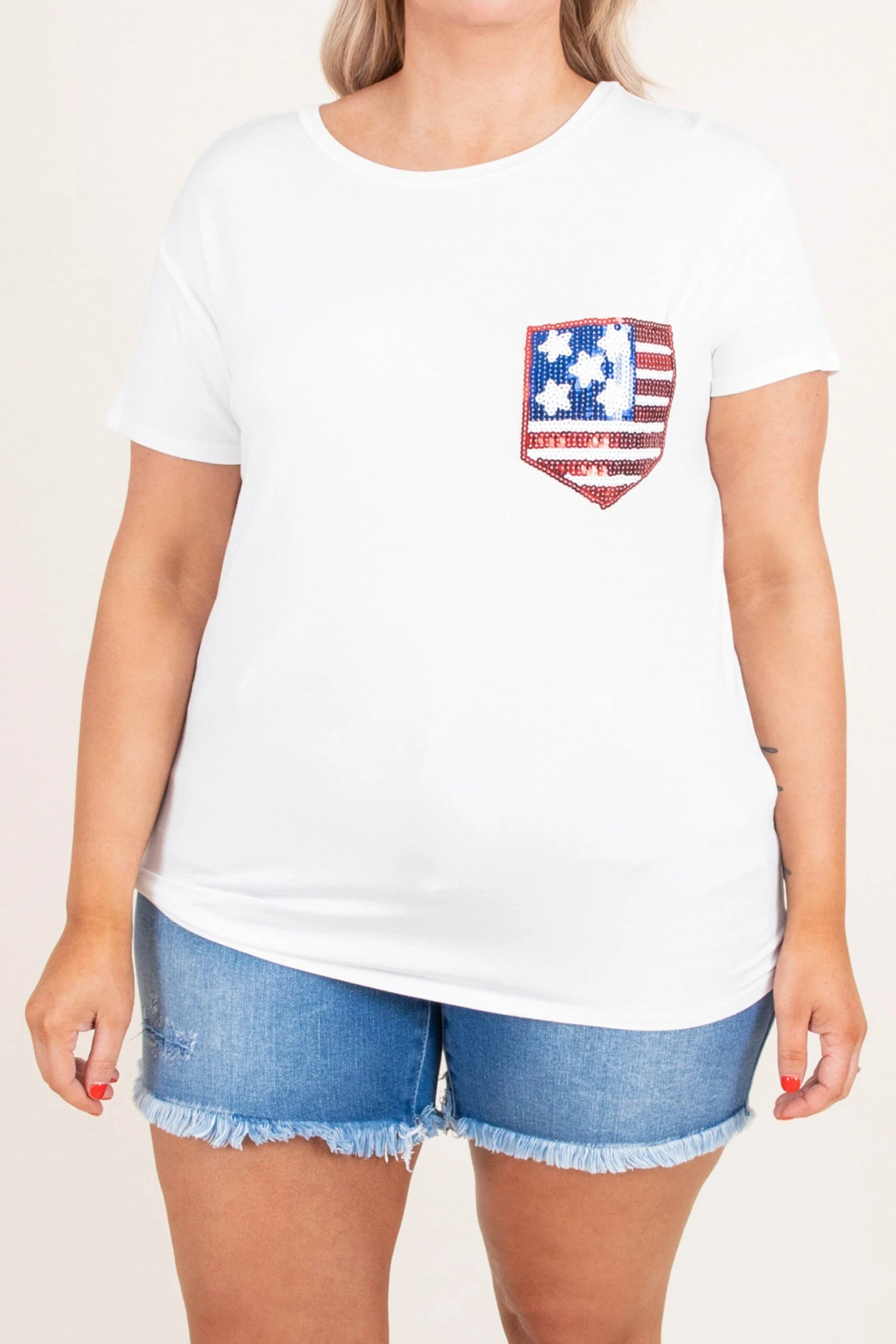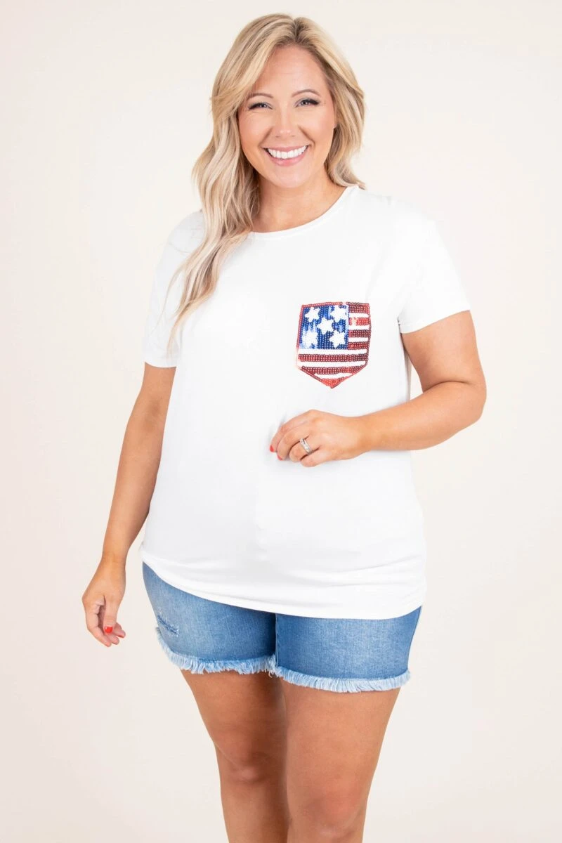 Look like a fashion hero when you’re wearing this top! This top has a trendy mix of stars and stripes with patriotic colors that are perfect for the season! It’s comfortable for all-day wear, has a flowy fit, and features the cutest front pocket to level up any outfit! Style this top with skinnies or shorts for an effortlessly chic look!Â