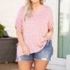 This top is so above average! The pink color is so darling and the white stripe pattern gives this top something extra! The material is stretchy and soft making this perfect to wear all day and the cuffed sleeves are so cute! Style this fun top with some jean shorts and your fave shoes for a perfect daytime look!