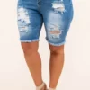 We simply adore these FAB shorts! They are a wardrobe staple for any summer event! The elastic waistband provides a comfortable fit, while the light indigo color creates a unique and effortless look! The shorts have a flirty length that is perfect for warm weather occasions!