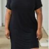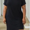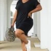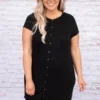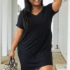 Admire the beauty of this dress! The classic black color is so sweet and the basic style makes this cutie perfect for every day wear! The material is so soft and the loose fit will flatter everyone! Style this with sandals for a totally chic look!