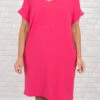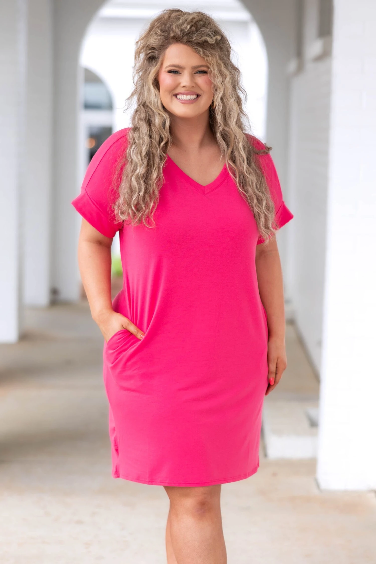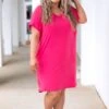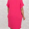 Admire the beauty of this dress! The classic fuchsia color is so sweet and the basic style makes this cutie perfect for every day wear! The material is so soft and the loose fit will flatter everyone! Style this with sneakers for a totally chic look!