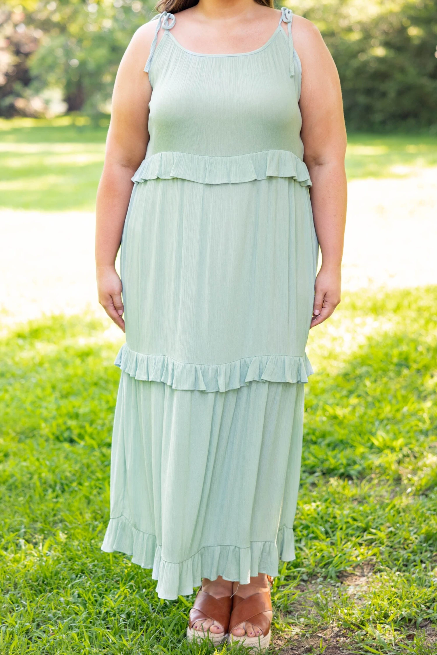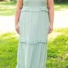 Everyone will be admiring how beautiful you are in this dress! It’s comfortable for all-day wear, has a figure-flattering fit, and features the cutest strappy neckline and ruffle detailing down the body! Simply, pair this dress with wedges or sandals for an effortlessly chic look!