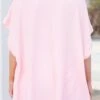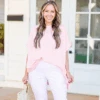 We are all about this gorgeous top! The lovely pale peach color and oversized fit is super comfy and chic! The ribbed texture and stretchy style is a must-have! Style this top with some white denim and sandals for a classic chic look!