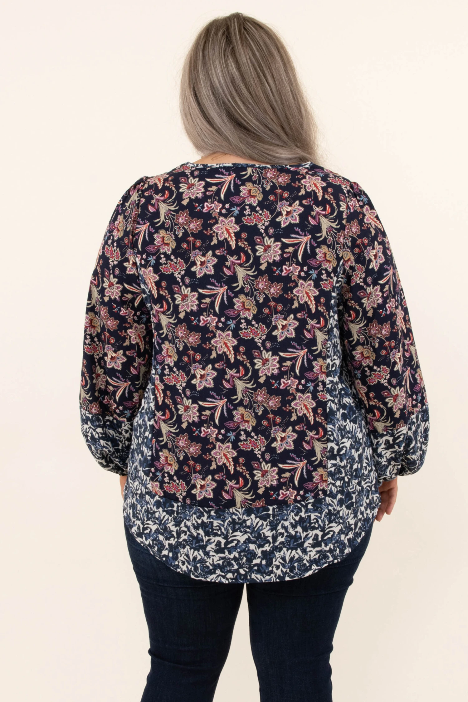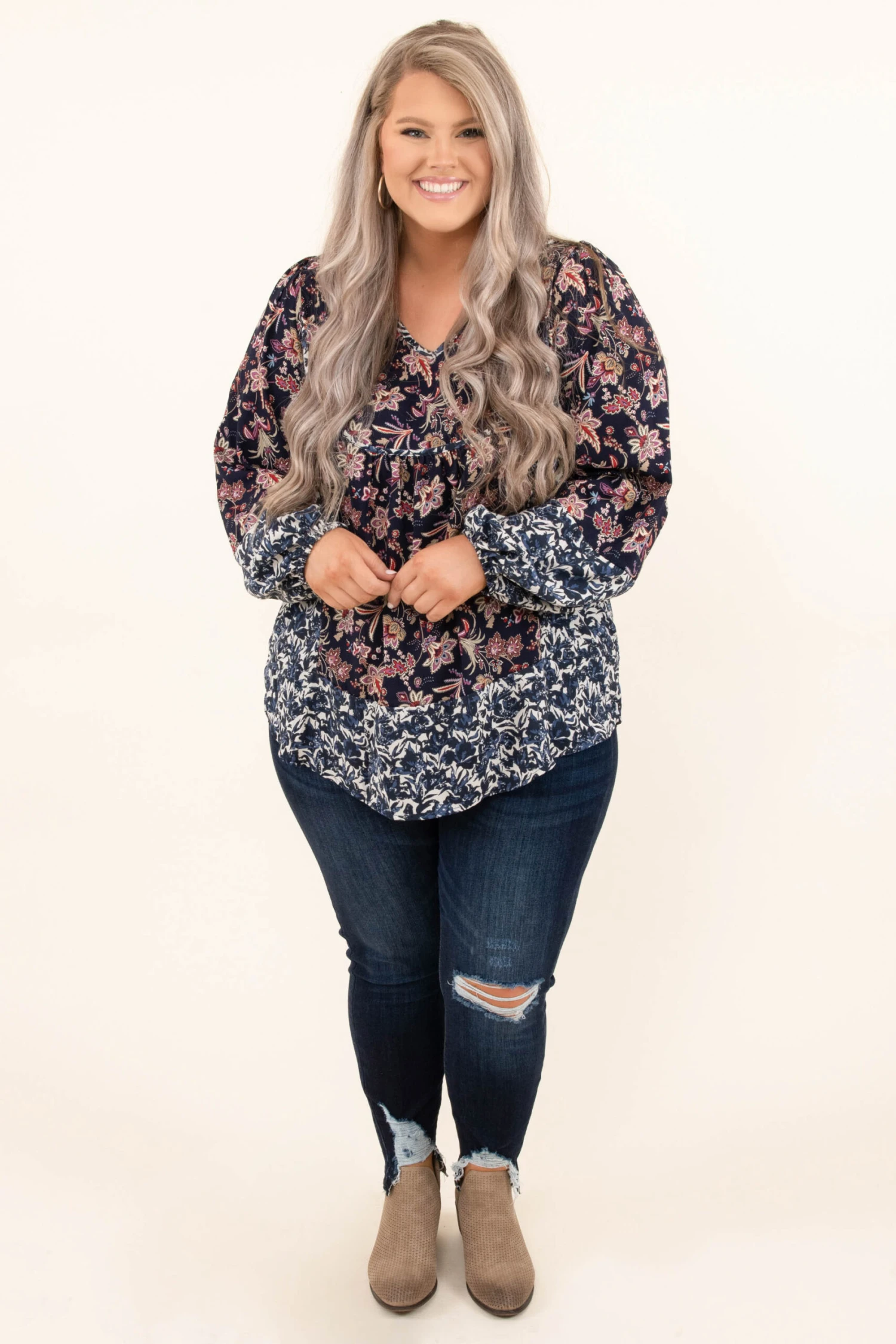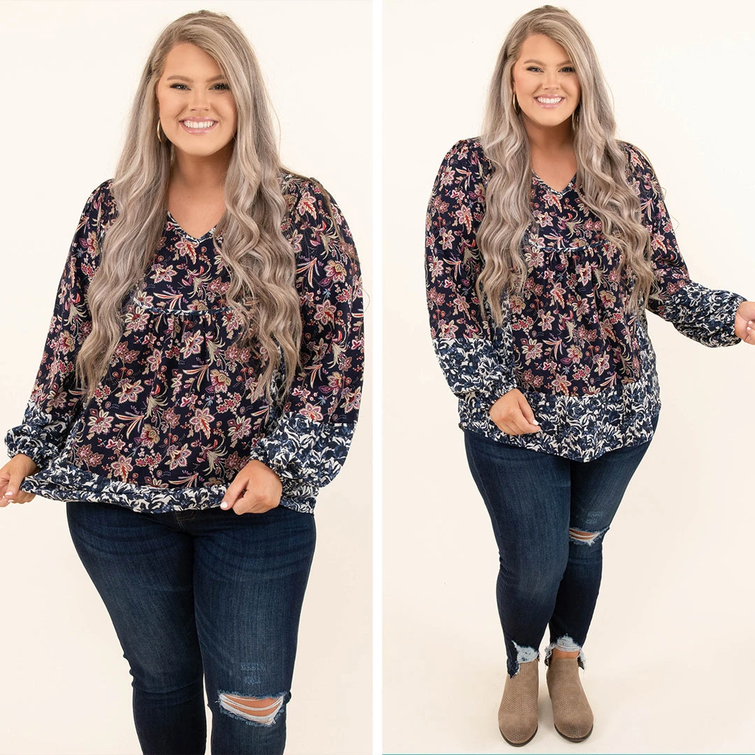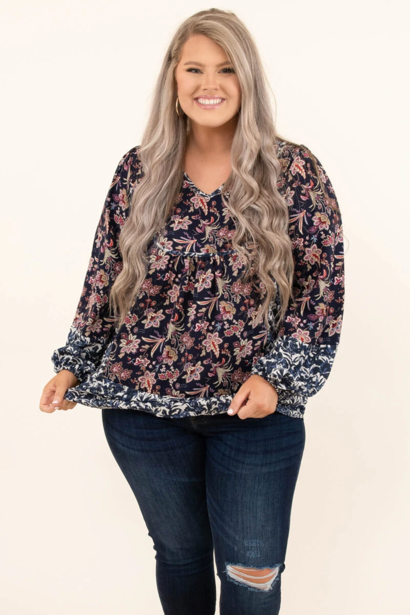 All eyes will be on you in this top! This top has a pretty floral pattern with a deep navy color that we adore! It’s comfortable for all-day wear, has a flowy fit! Simply style this top with skinnies and your favorite booties for an effortlessly chic look!