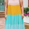We heard you were looking for your new favorite dress! This beautiful midi dress features a multi-color block design for a sophisticated yet playful look! The lightweight, flowy fabric is sure to keep you cool and comfortable throughout the day! Easy to style for any occasion, this dress is the perfect way to make a statement!