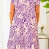 This dress is a total dream! It has a stunning lavender color mix that is just in time for the season! The intricate paisley pattern adds a touch of elegance to this dress, while the flutter sleeves give a feminine and flirty feel! Perfect for any occasion, this dress is a dream come true!