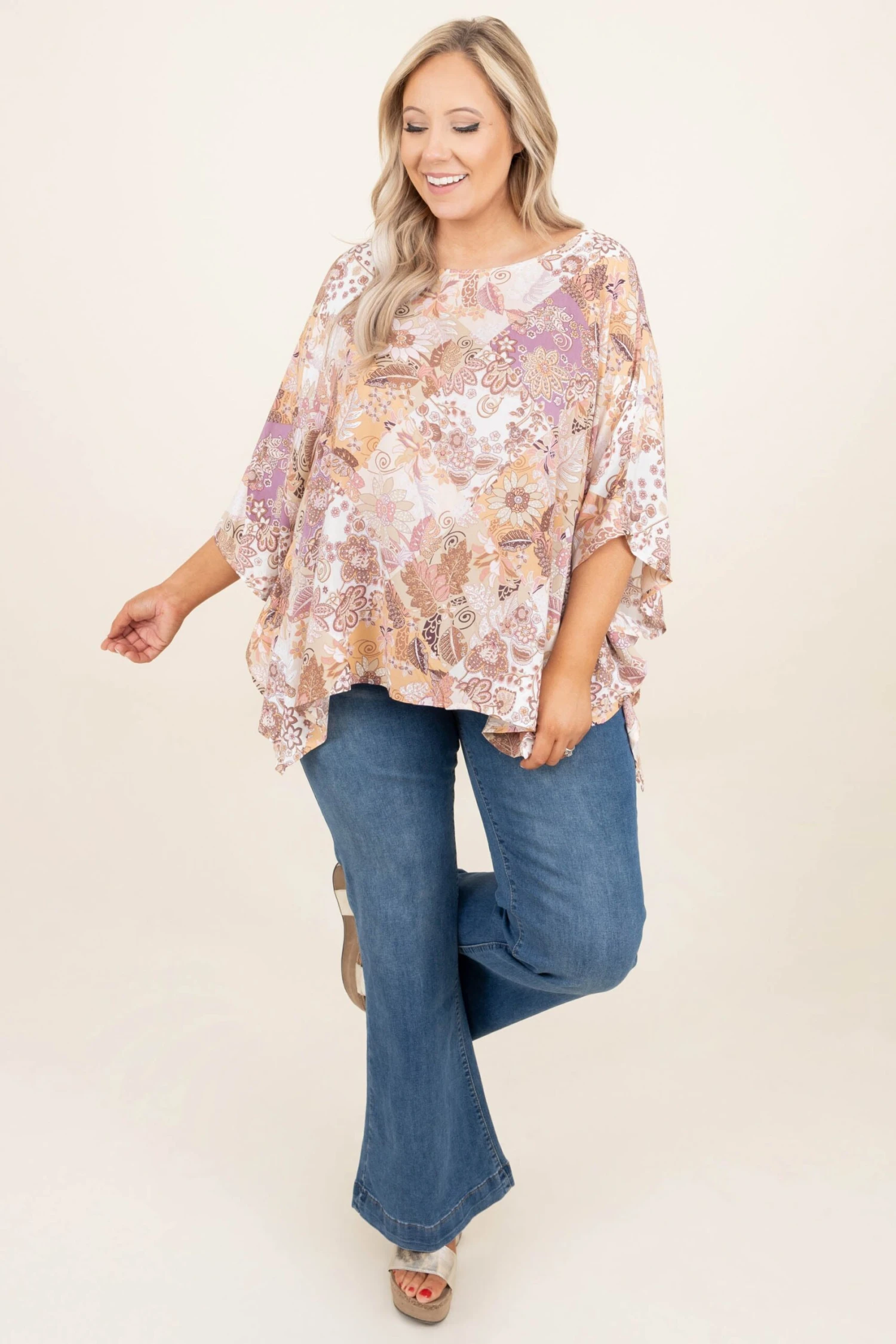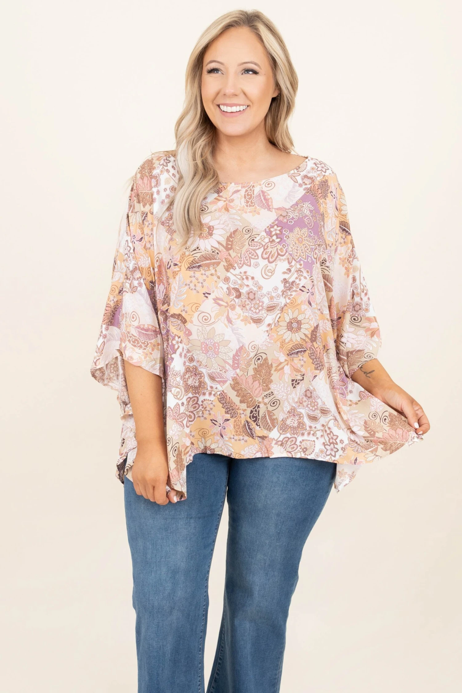 Stay grounded in this top! The paisley floral pattern is absolutely adorable and the neutral colors can be paired with so many different things! This cutie has a loose fit to flatter all and dolman sleeves for a chic touch! Style it with some flare jeans and wedges for a super stylish look!