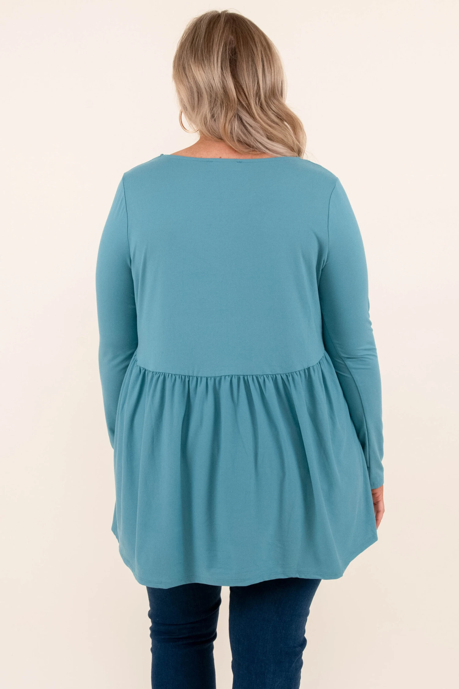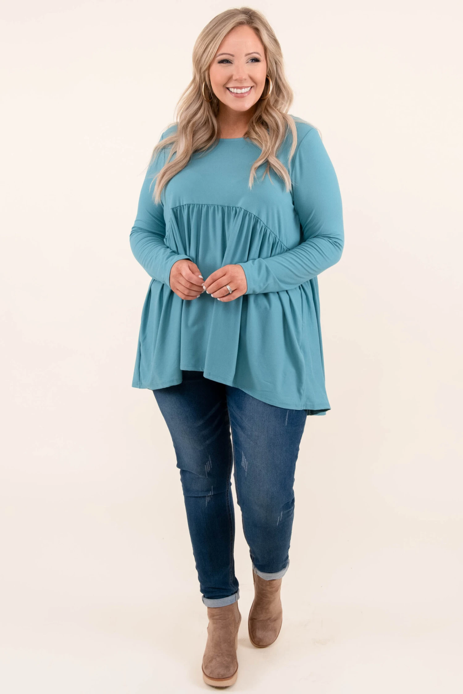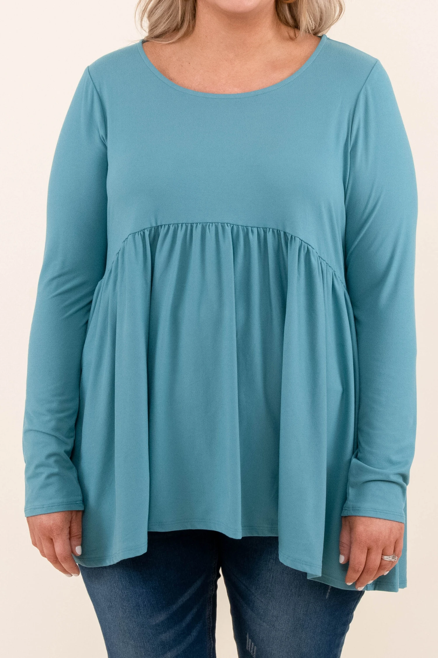 All you need is this adorable, dusty teal top! It is super soft and features a babydoll fit that will flatter your figure, perfect for all day wear! You can throw this on under any jacket or cardigan with booties for a cool weather style!