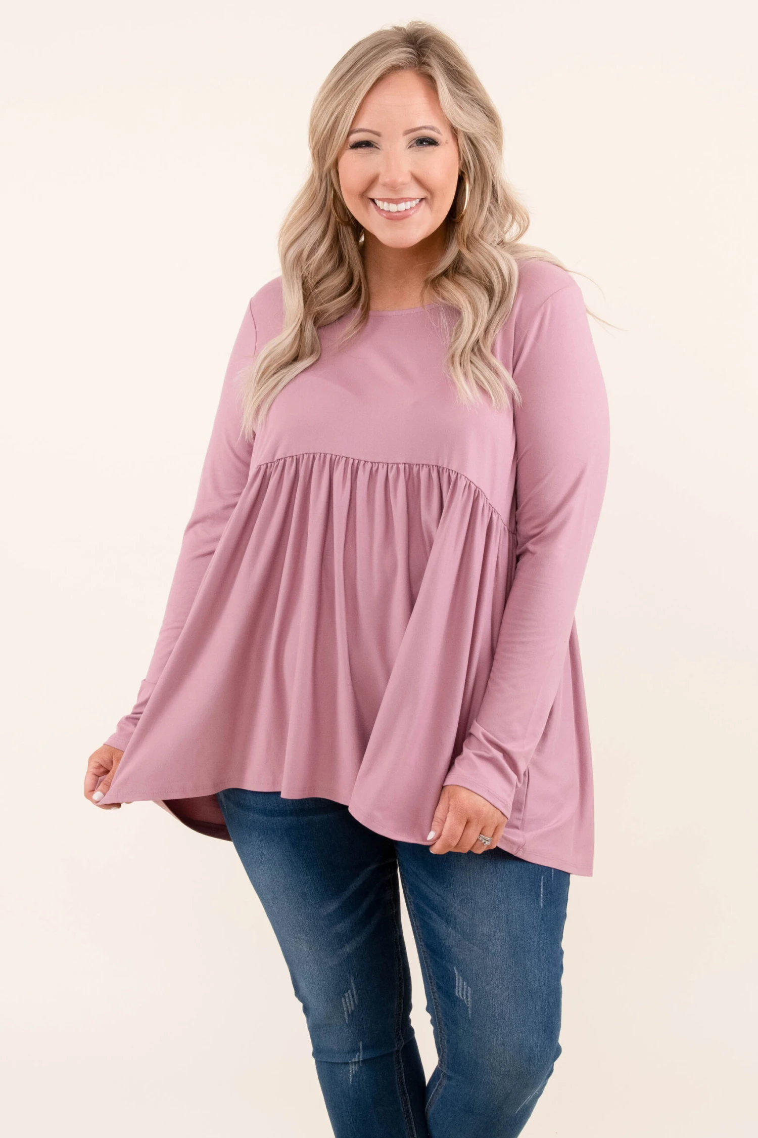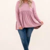 This top is all you need! It will become a staple in your closet in no time! It has a neutral light rose color, a babydoll fit and is longer in the back for full coverage. Style under a printed cardigan or jacket for the perfect outfit!