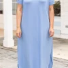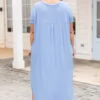 The maxi you’ll be wearing ALL summer long!! The spring blue color is super sweet! It’s ultra comfy and so soft!! The relaxed, flowy fit makes it perfect for hot days and nights!! Pair it with heels and cute accessories to complete the look!