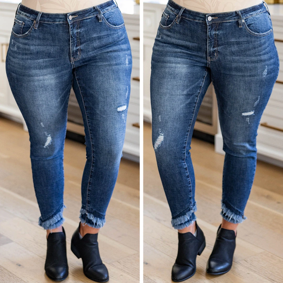These jeans really are all that! They have cool minimal distressing with a fun frayed hem. Style these cuties with your fave top and jacket for a chic look this season!
