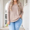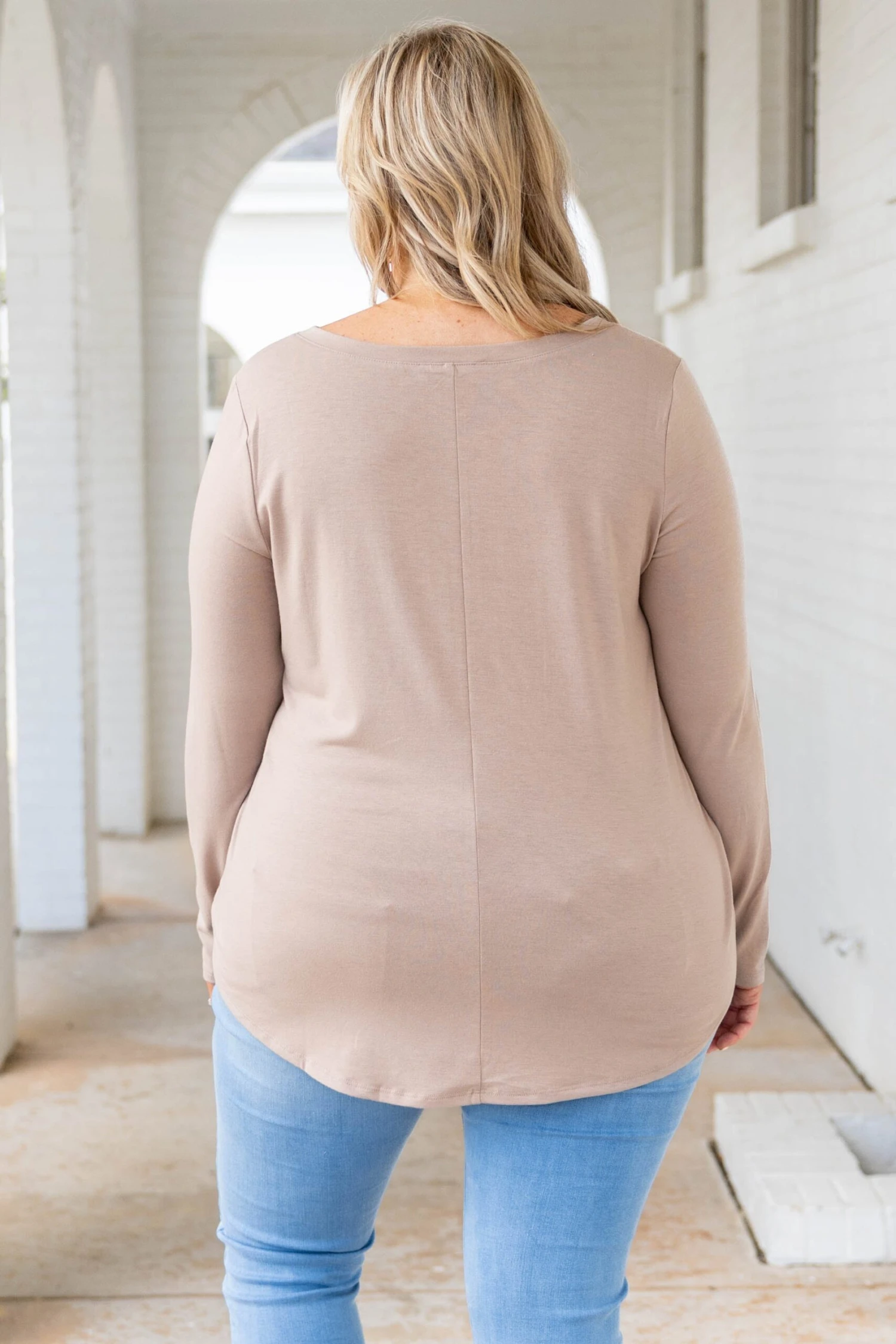 This top is all things nice! It has a solid ash mocha color, a v-neck style, and a super comfy fit! The fabric is ultra soft and we love the long length in the back and front! Wear it with leggings for a casual day of lounging or dress it up with skinnies! Any way you style it you’ll look super trendy!