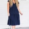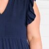 We are so in love with this dress! It is a must-have for any fashionista! The flutter sleeves add a touch of elegance, while the refreshing navy color is perfect for any day out on the town! Who doesn’t love a dress with pockets?! Elevate your style and feel confident in this versatile dress!