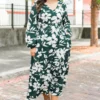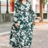 Indulge in the luxurious allure of this dress. This stunning green dress features long puff sleeves, a V-neckline, and a tiered a-line silhouette for a boho-chic look! The smocked waistline creates a flattering shape while the floral print adds a touch of femininity! Perfect for fall, this maxi dress will make you feel confident and stylish!