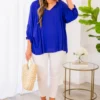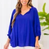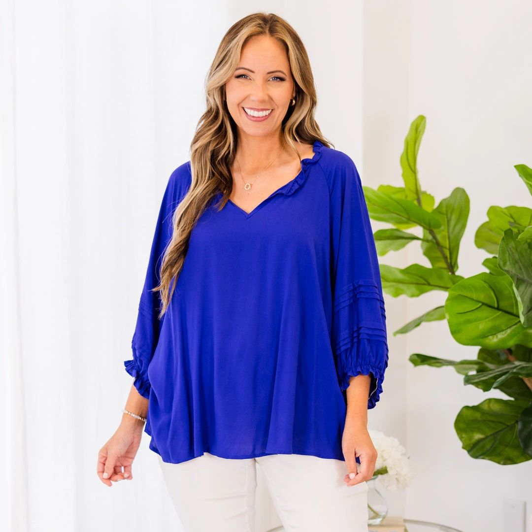 This top is ready to come home to you! Expertly designed, this beauty boasts trendy ruffle detailing and a flowy fit that is perfect for the season! The lovely royal blue color makes it a perfect statement piece for any casual outing!