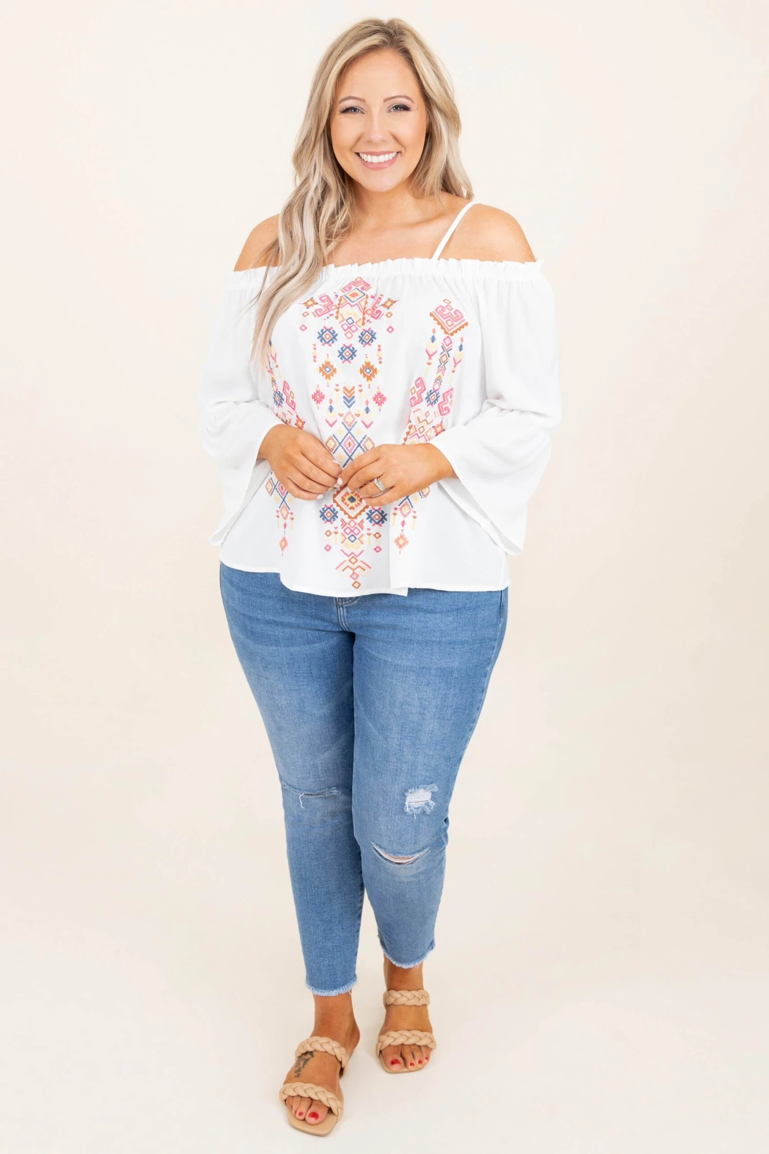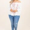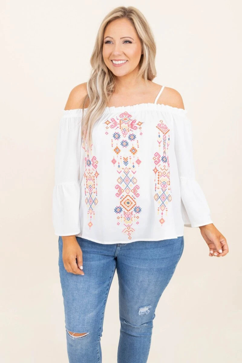 This top makes us want to take a beach vacay! The embroidered style is so trendy and the off the shoulder look is so chic! This cutie has adjustable straps so you can adjust them to your liking and an elastic band around the shoulders! Style it with some skinnies and sandals for a super stylish look!