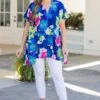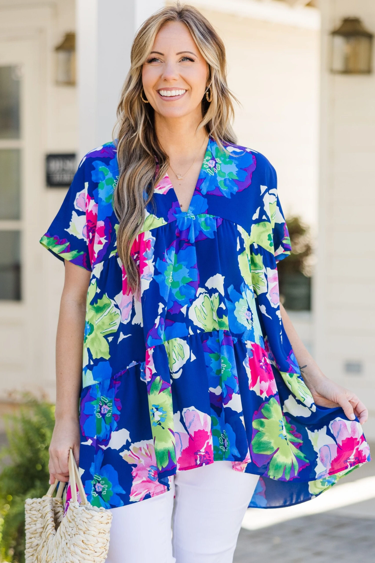 Aloha Spirits Top in Pink features a delicate floral pattern and a flowy fit. Its vibrant blue color is perfect for the season and pair well with cute denim and wedges. Stay stylish and comfortable with this versatile top.