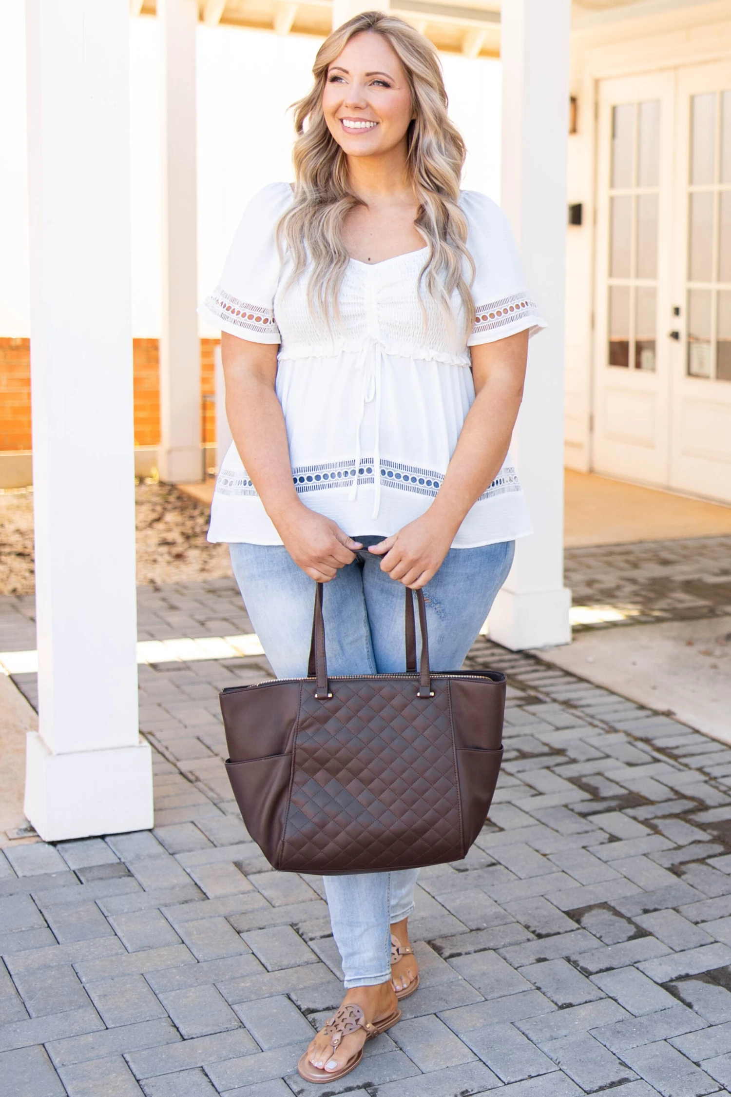 Grab this beauty and carry it alongside you! This purse has a lovely dark coffee color with a textured design that is super trendy and sweet! Pack all of your belongings in this cutie for all of your on-the-go needs! Pair it with all of your fave outfits all season long for a sassy chic look!