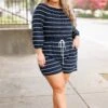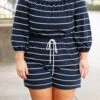 Get out and go on an adventure in this flirty romper! It has a gorgeous navy color that is perfect for the season! The high neckline and comfy fit is perfect for a day out on the town! Style this romper with some wedges or sandals for a casual chic look!