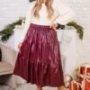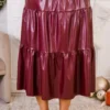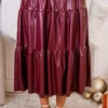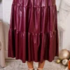 Experience elegance and comfort with our Always and For Leather Skirt! This burgundy leather maxi skirt boasts a stretchy waistband and three tiers, providing maximum style and ease! Perfect for any occasion, this skirt will make you feel effortlessly chic and confident!