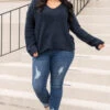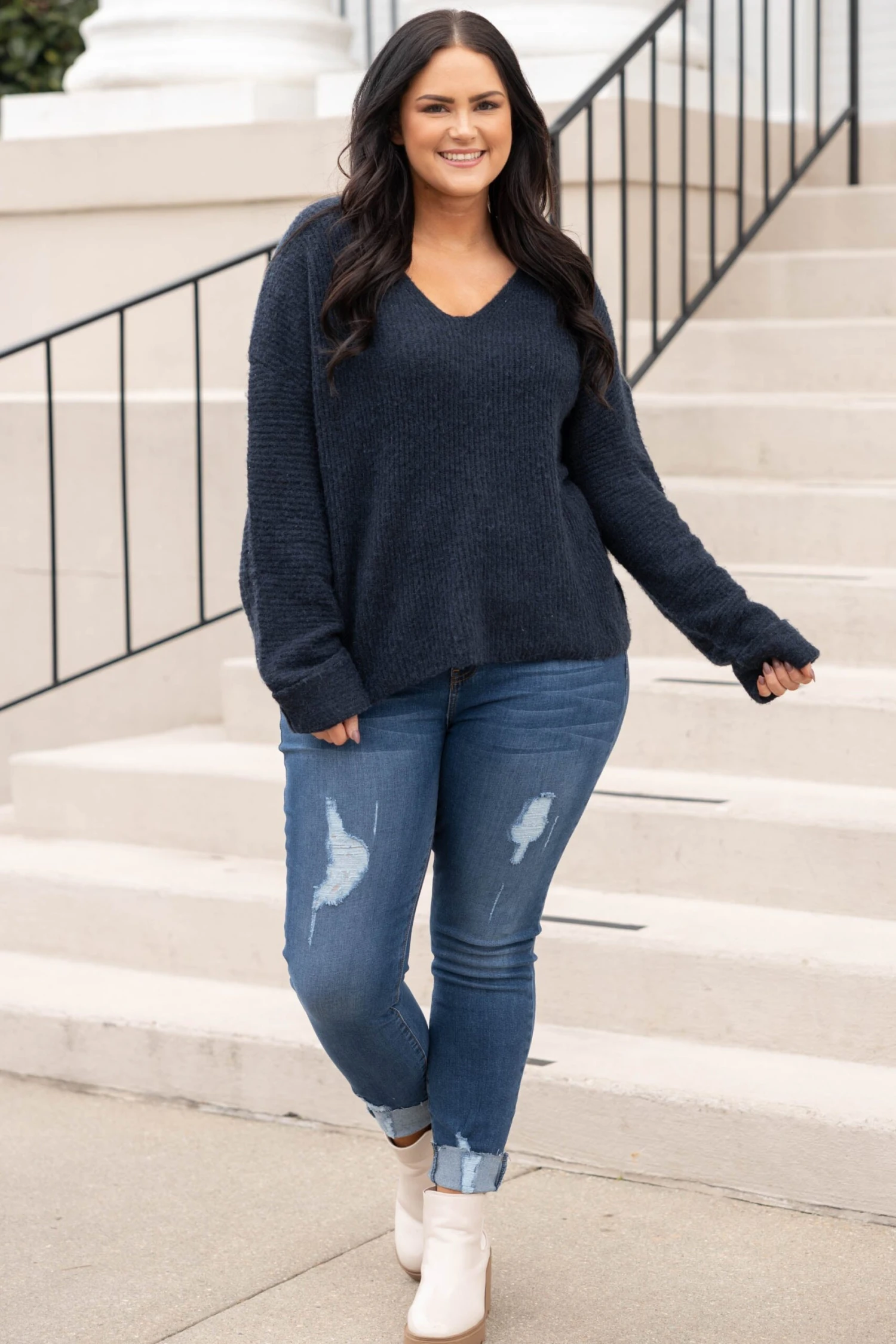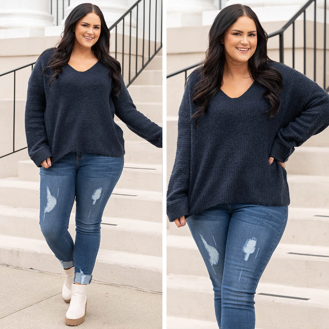 You’ll feel so much better if you grab this beauty! This sweater has a soft navy color with with a ribbed texture that is so cozy and sweet! The stretchy figure flattering fit is perfect for every day wear this season! Style this sweater with some distressed skinnies and boots for a casual chic look!