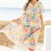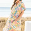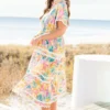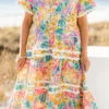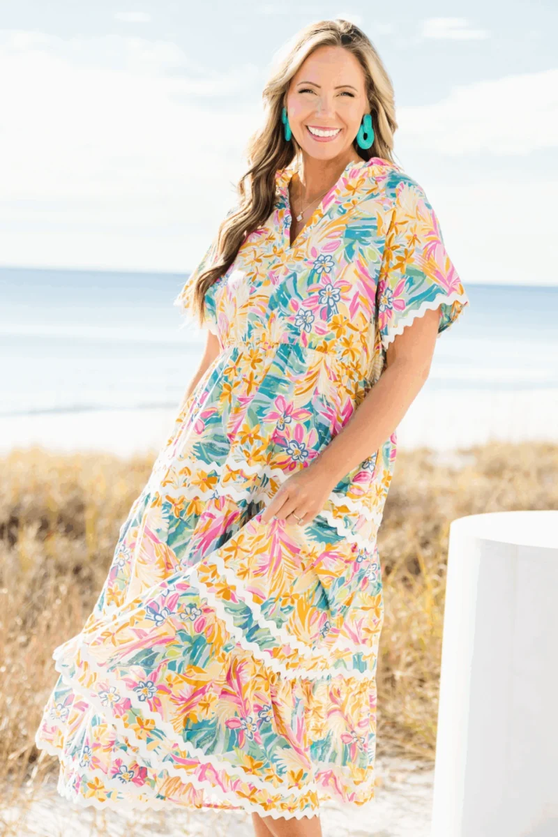 Introducing the always radiant Daylight Maxi Dress! With its bright floral tropical print and flare sleeve, you’re sure to stand out in style! The v-neck, functional pockets and white ric rac piping add the perfect touch! Be prepared to be the life of the party (or beach) in this playful dress!