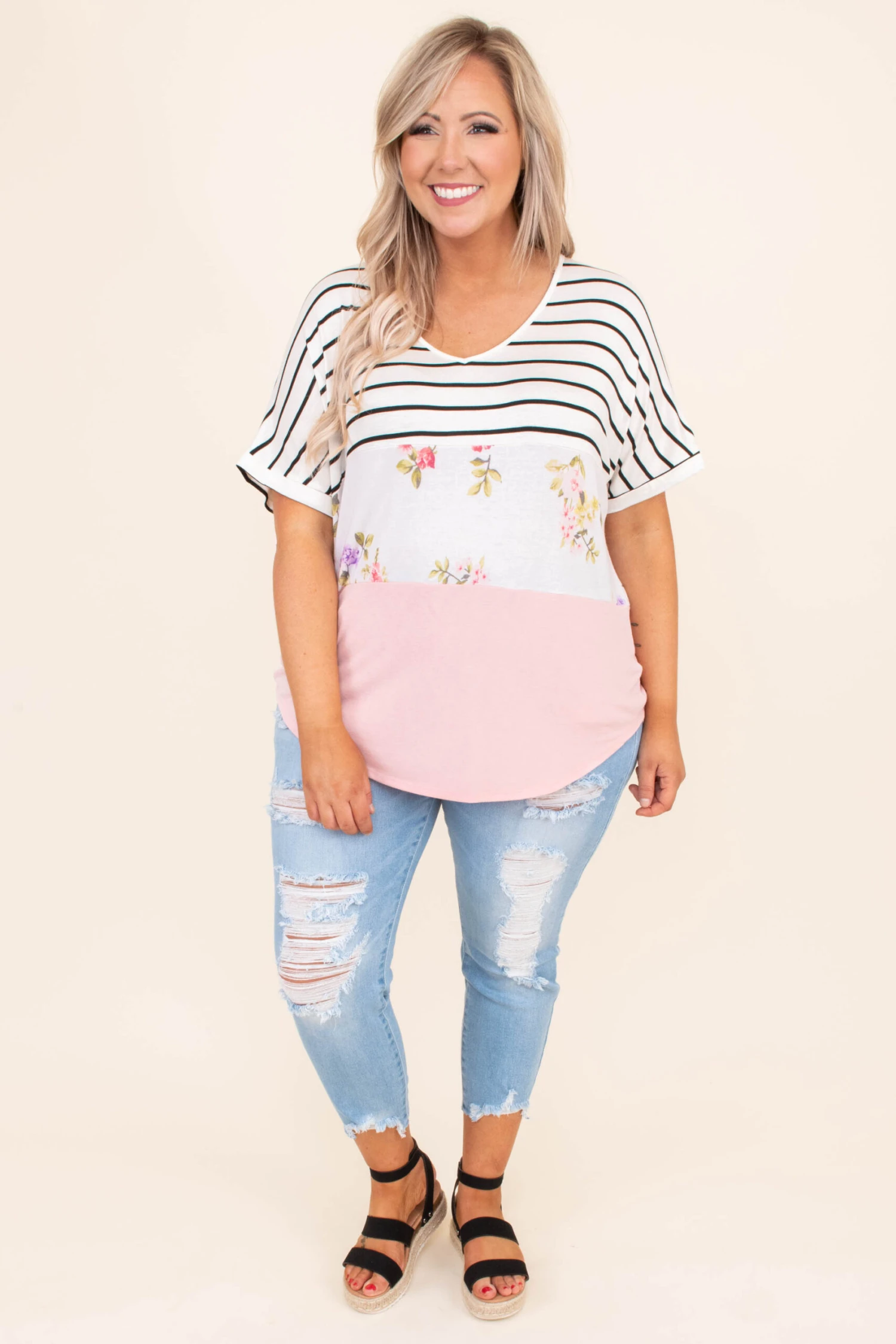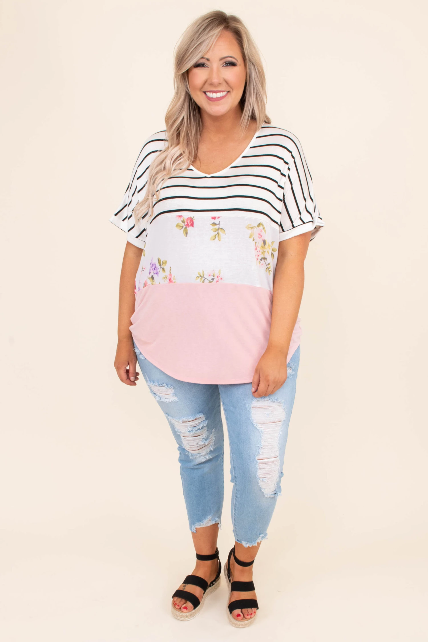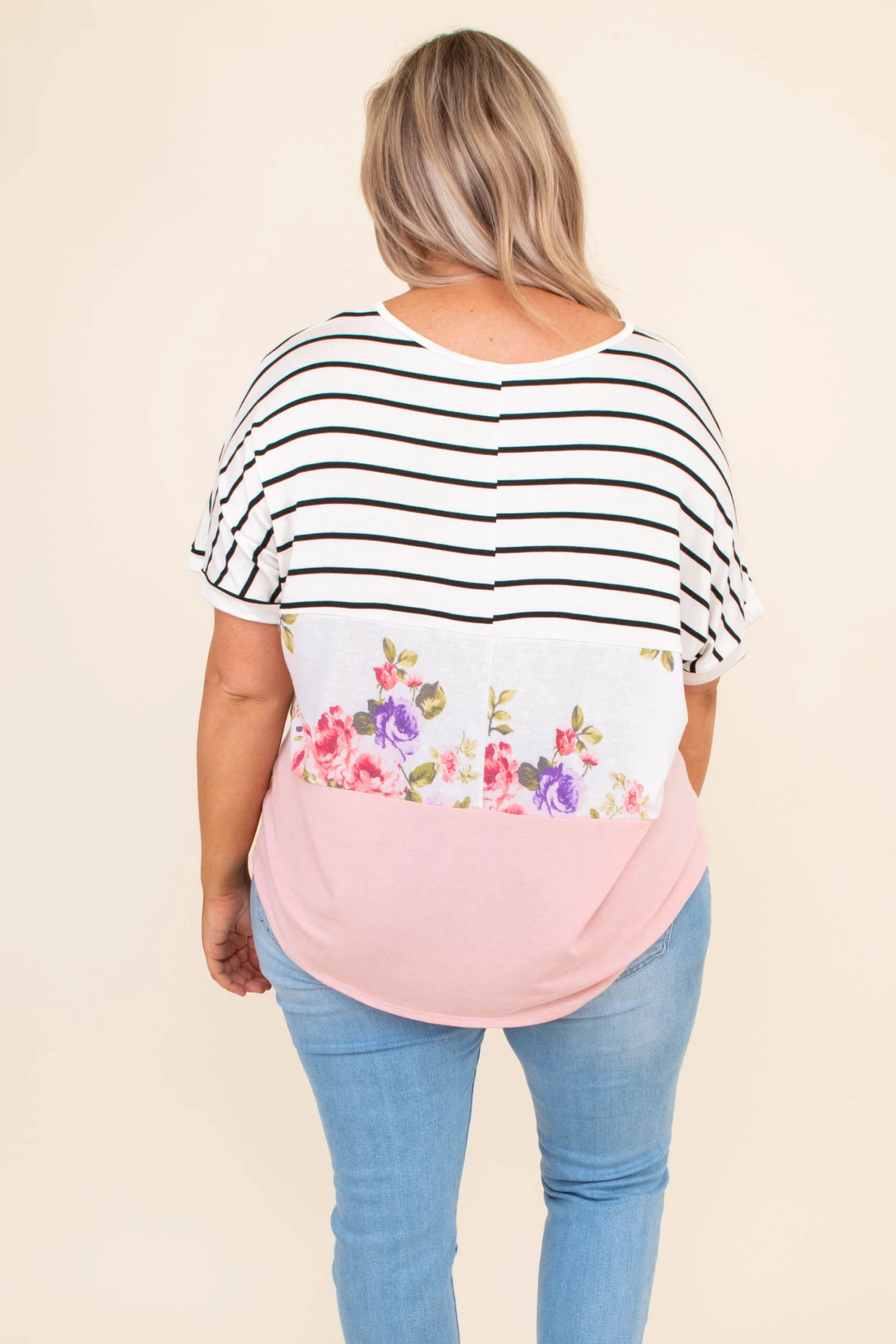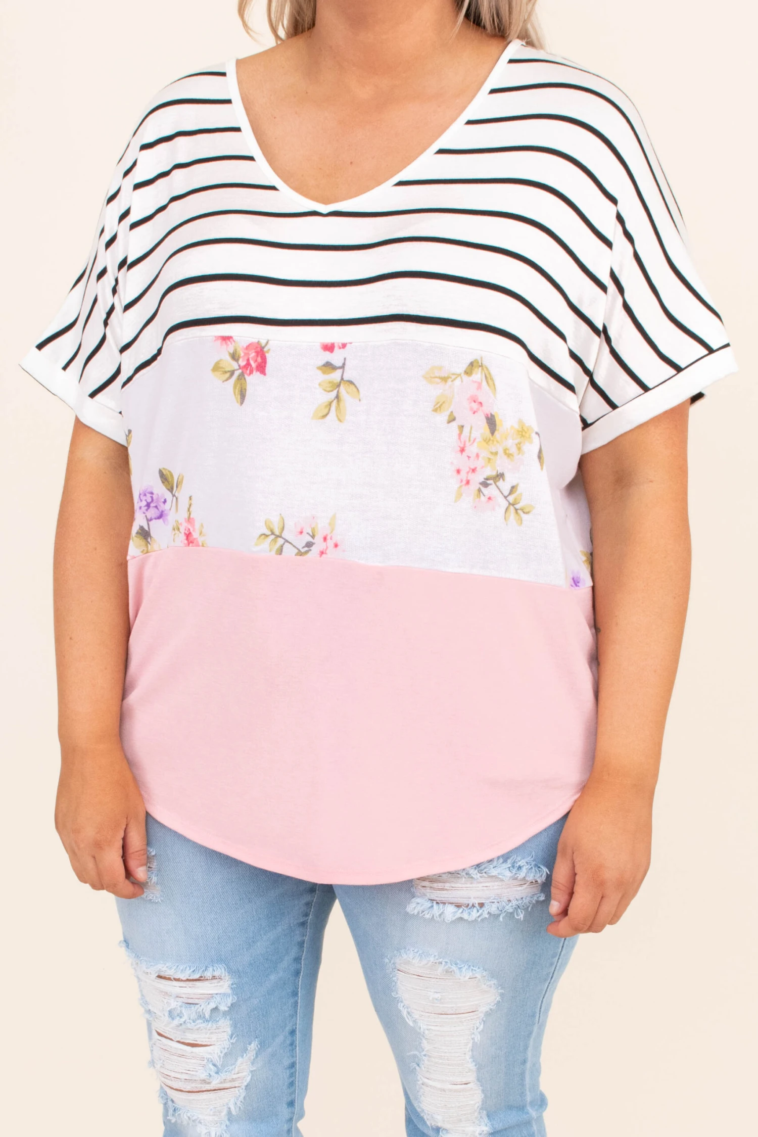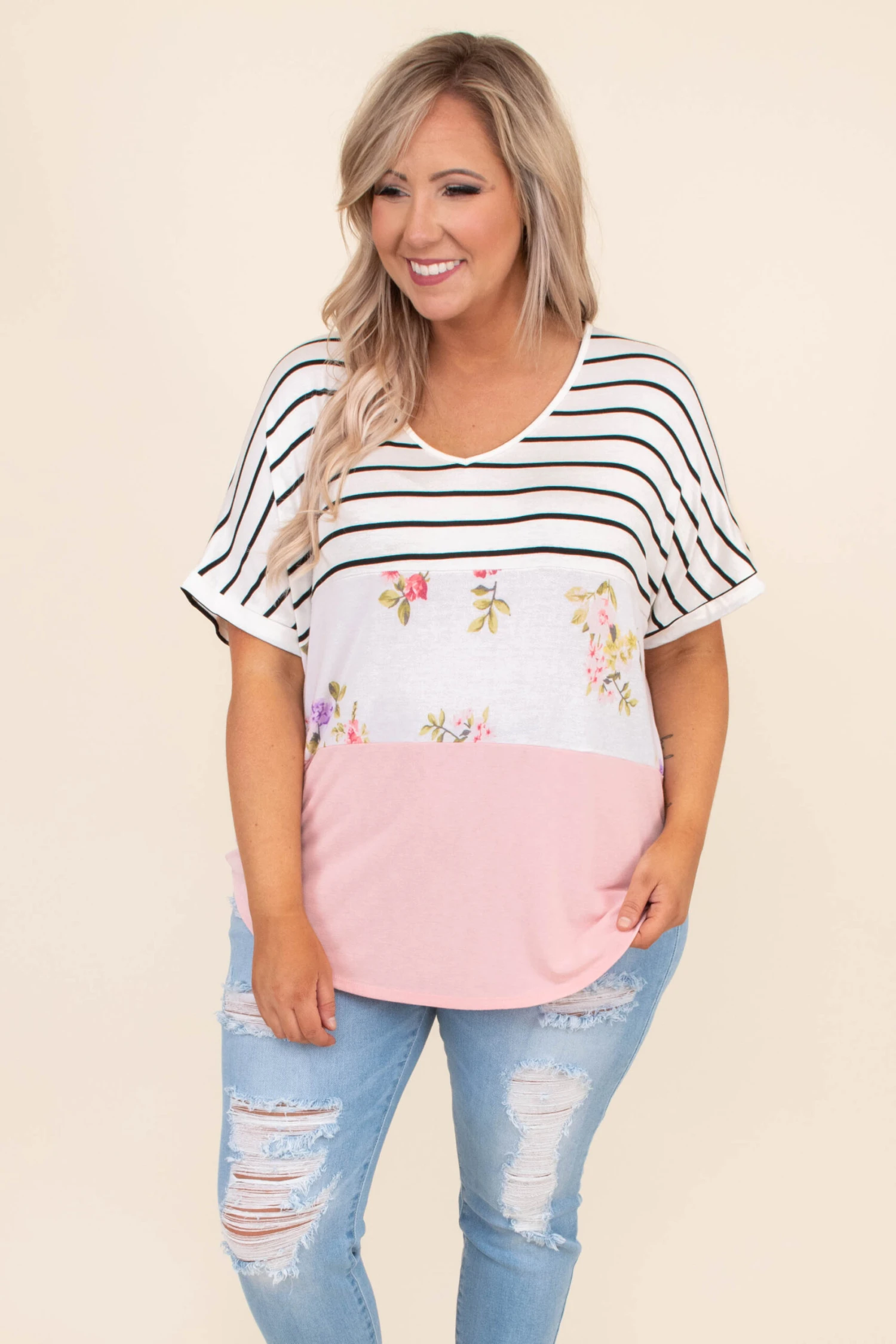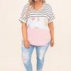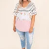 If this top is on your heart, then it needs to be in your cart! This top has a trendy mix of patterns with colors that are perfect for the season! It’s comfortable for all day wear, has an over sized fit, and can be worn all season long! Simply, style this top with shorts or skinnies for an easy everyday outfit!Â