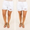 These shorts will easily become your new faves! They have a classic white color and a comfy fit that is super sweet! The distressed design is a season favorite! Pair these shorts with a sassy top or graphic tee for a classic chic look!