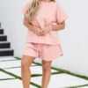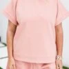 Upgrade your wardrobe with our Always The Same Thing Top in pink! This top features a crew neckline, short sleeves, and embossed fabric for a touch of texture! Complete the look with our matching bottoms for a perfect pairing!