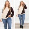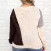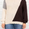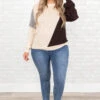 This sweater will always be on your mind! It has a neutral oatmeal color with a colorblock design that is a season favorite! The sleek flowy fit is great for a day out on the town or a casual night out! Style this sweater with some skinnies and booties for a classic chic look!