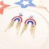 These gorgeous earrings have a striking dangle style with a vibrant rainbow design, perfectly embodying the vibrant spirit of America! Crafted with love, they make a beautiful accessory that goes with any outfit!