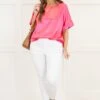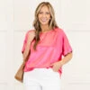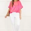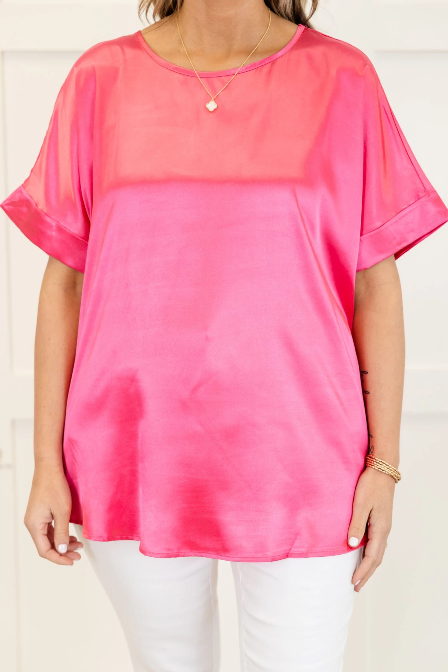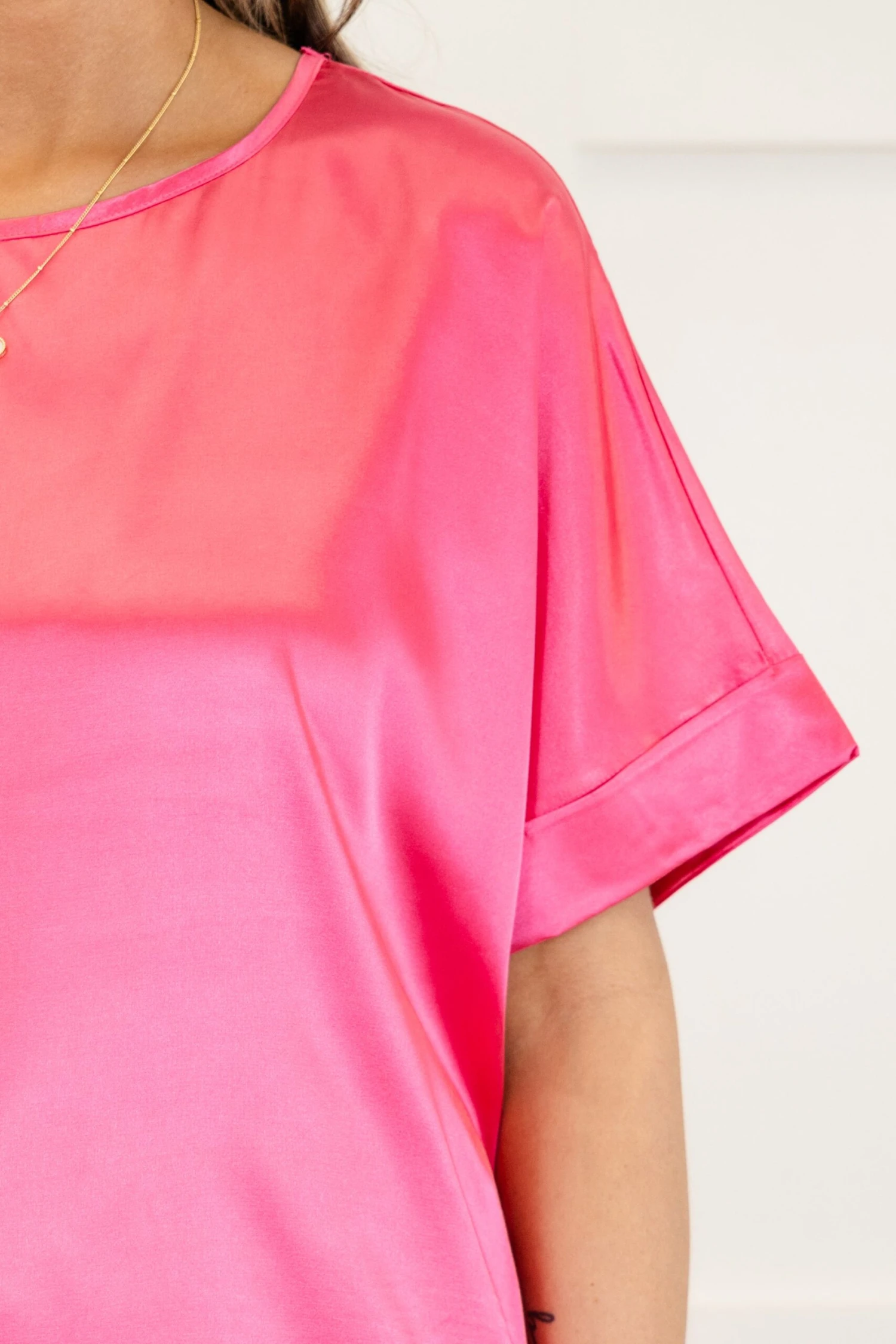 Enjoy an evening out on the town in this beautiful top! The dazzling fuschia color is so elegant and easy to pair with a cute skirt or skinnies! The flowy, flattering fit is perfect for any occasion! Style this beauty with all of your fave bottoms for the ultimate chic look!