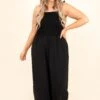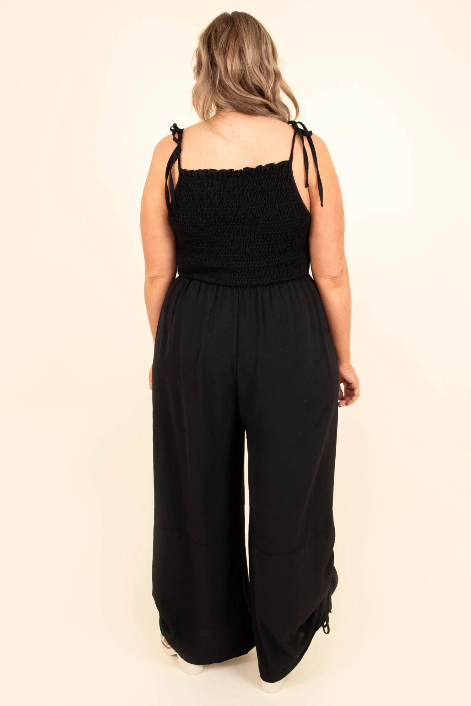 This jumpsuit is out of this world cute! The classic black color is so chic and easy to style with your fave heels and accessories! The smocked bodice and strap ties are simply adorable! It has functional pockets and is super comfy for all day wear! Pair this cutie with heels or wedges for the ultimate chic look!
