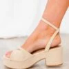 Add these cuties to your wardrobe for the season! They feature a textured design and a neutral color, adding a touch of sophistication to any outfit! The knotted look provides a chic and unique touch, while the block heel offers stability and comfort!Â