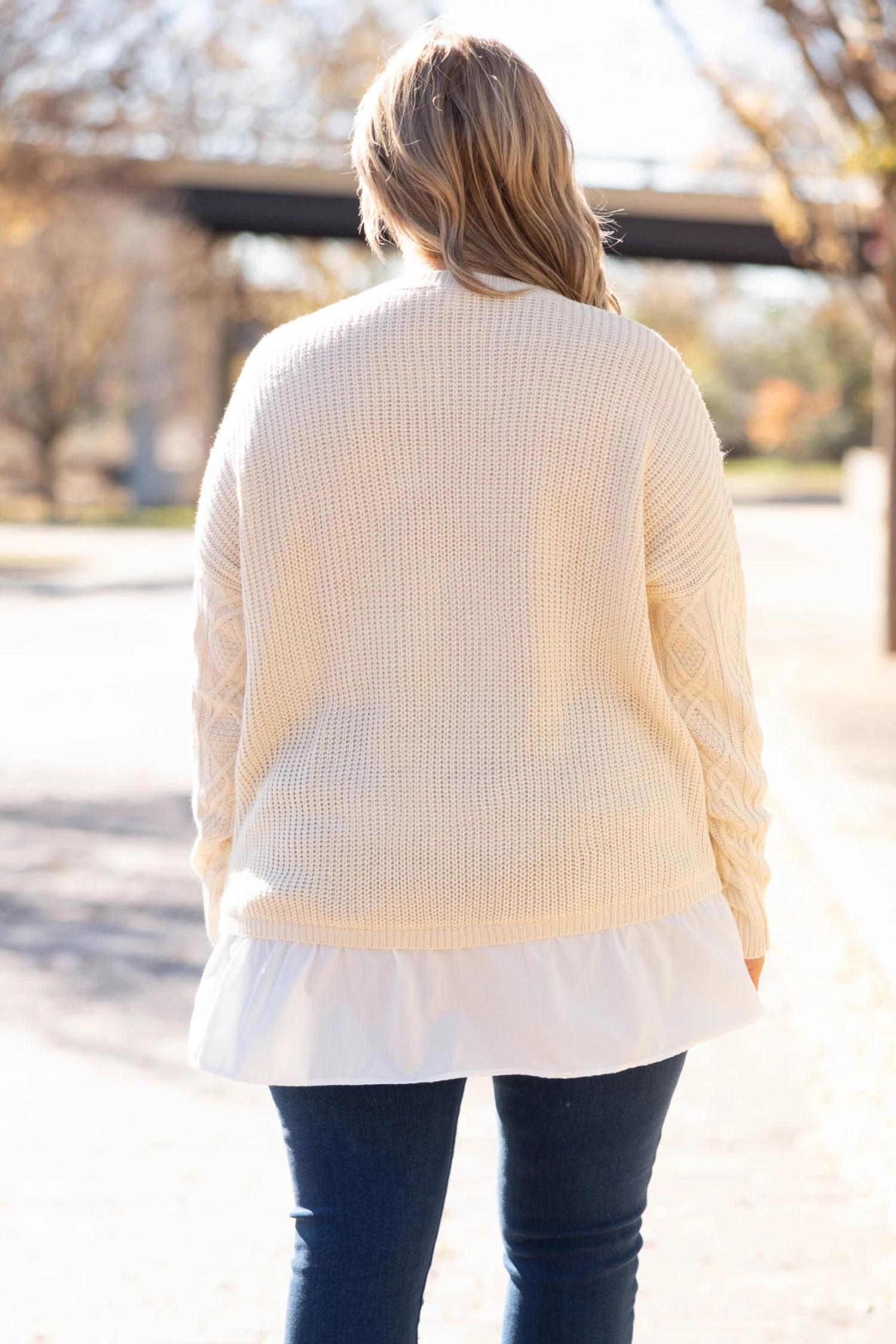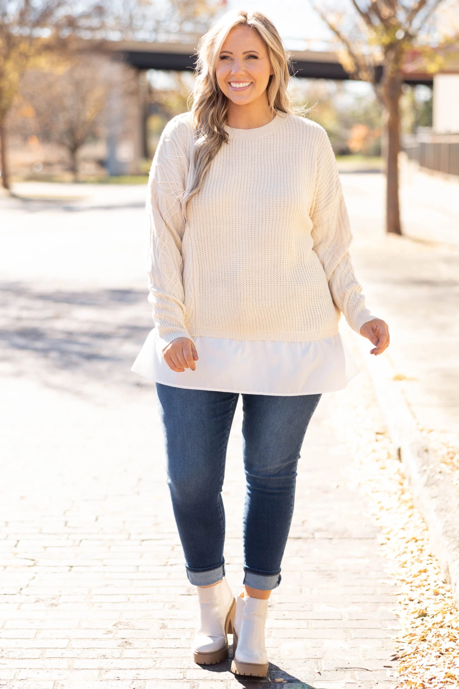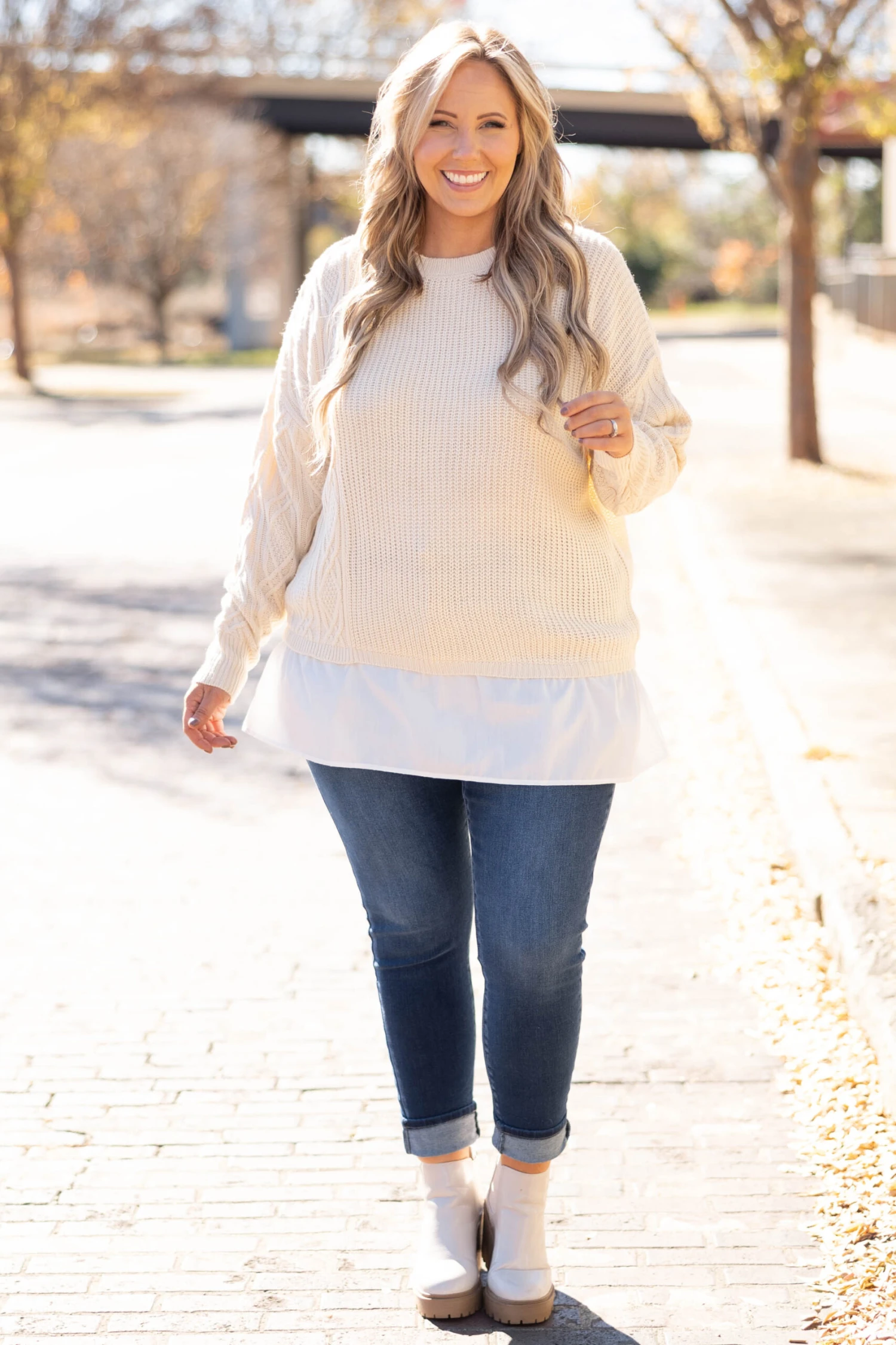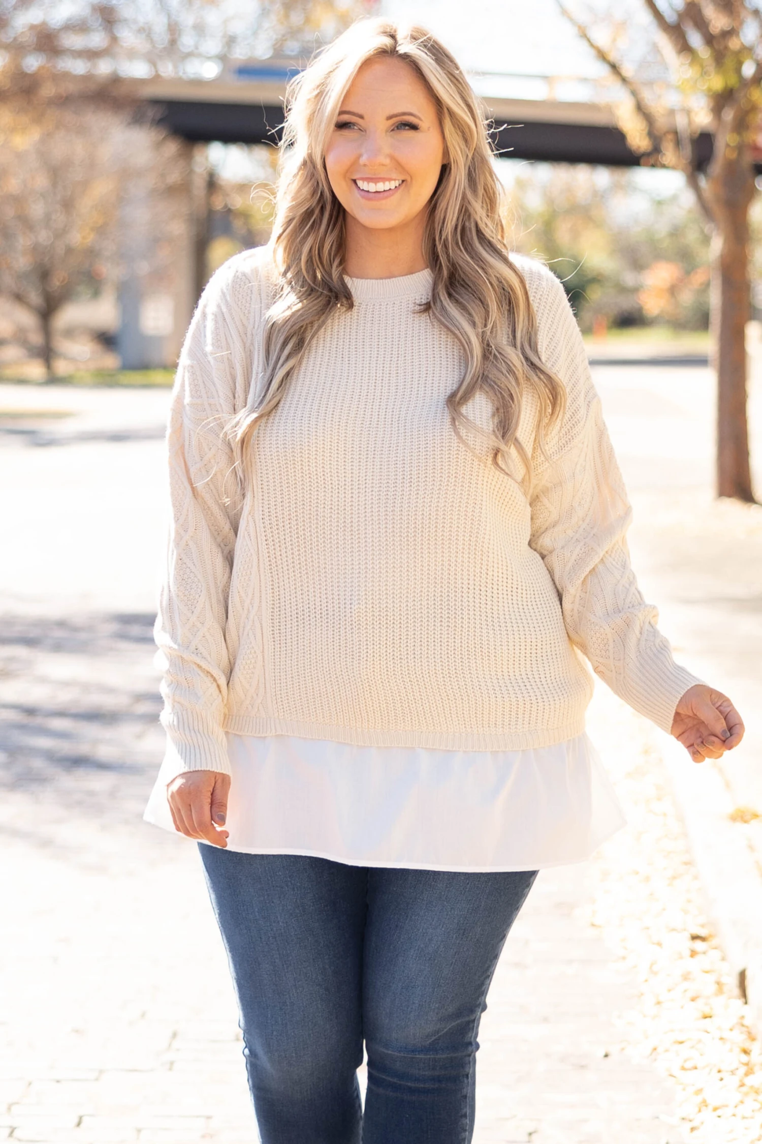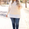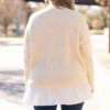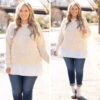 This sweater can definitely be yours! We love the neutral beige color with the trendy ribbed texture and figure flattering fit! The white accent and flowy material is so sweet! Style this top with skinnies and boots for a classy chic look!