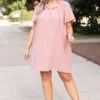 Enjoy those April breezes in this beauty! This dress has a dazzling mauve color with a comfy, flowy fit that is great for a day out on the town! The flutter sleeves and functional pockets are super chic! Pair this dress with some cute accessories and heels for a sassy chic look!